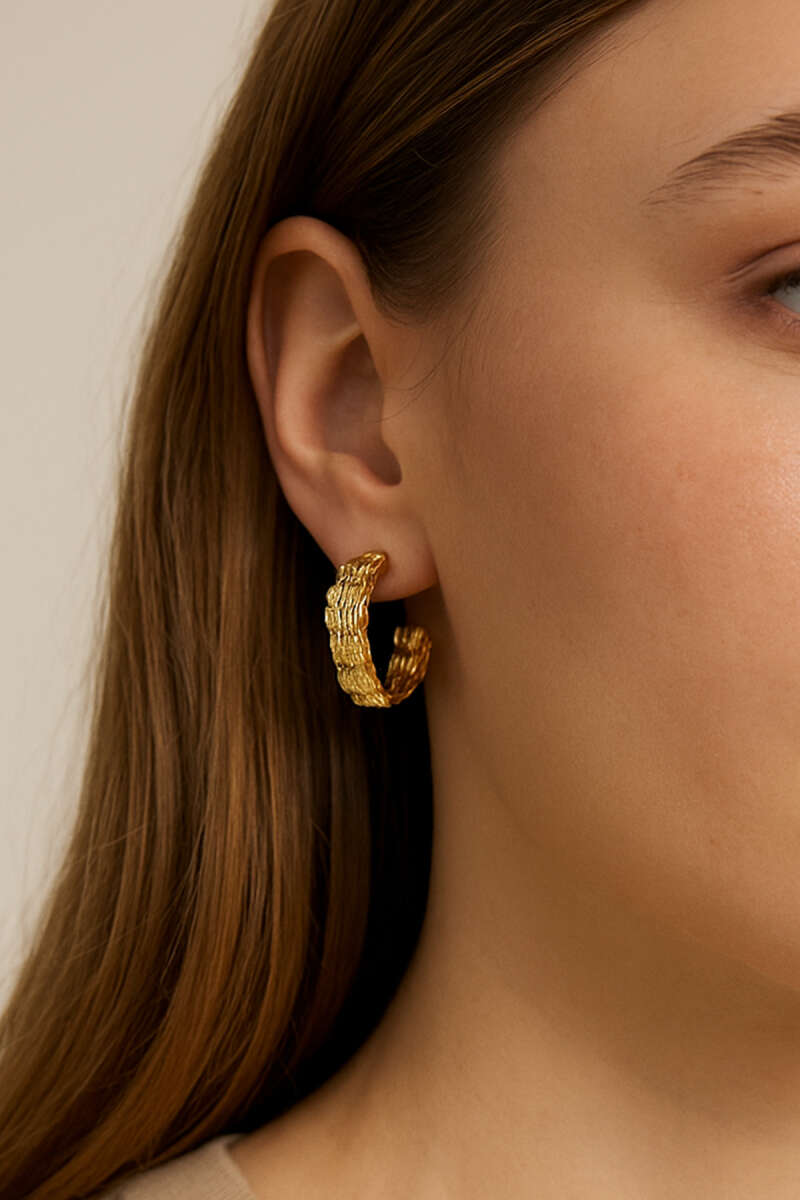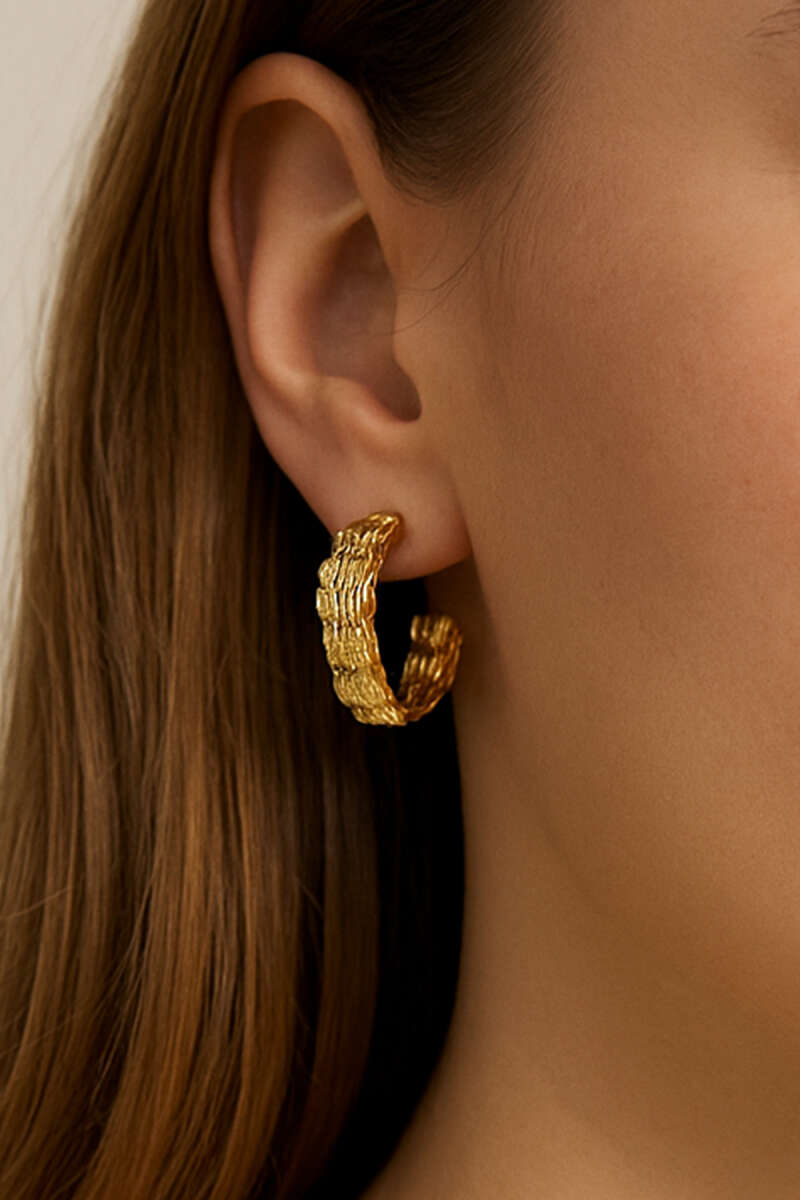 Oval Taşlı Vintage Küpe Yeşil Kahve