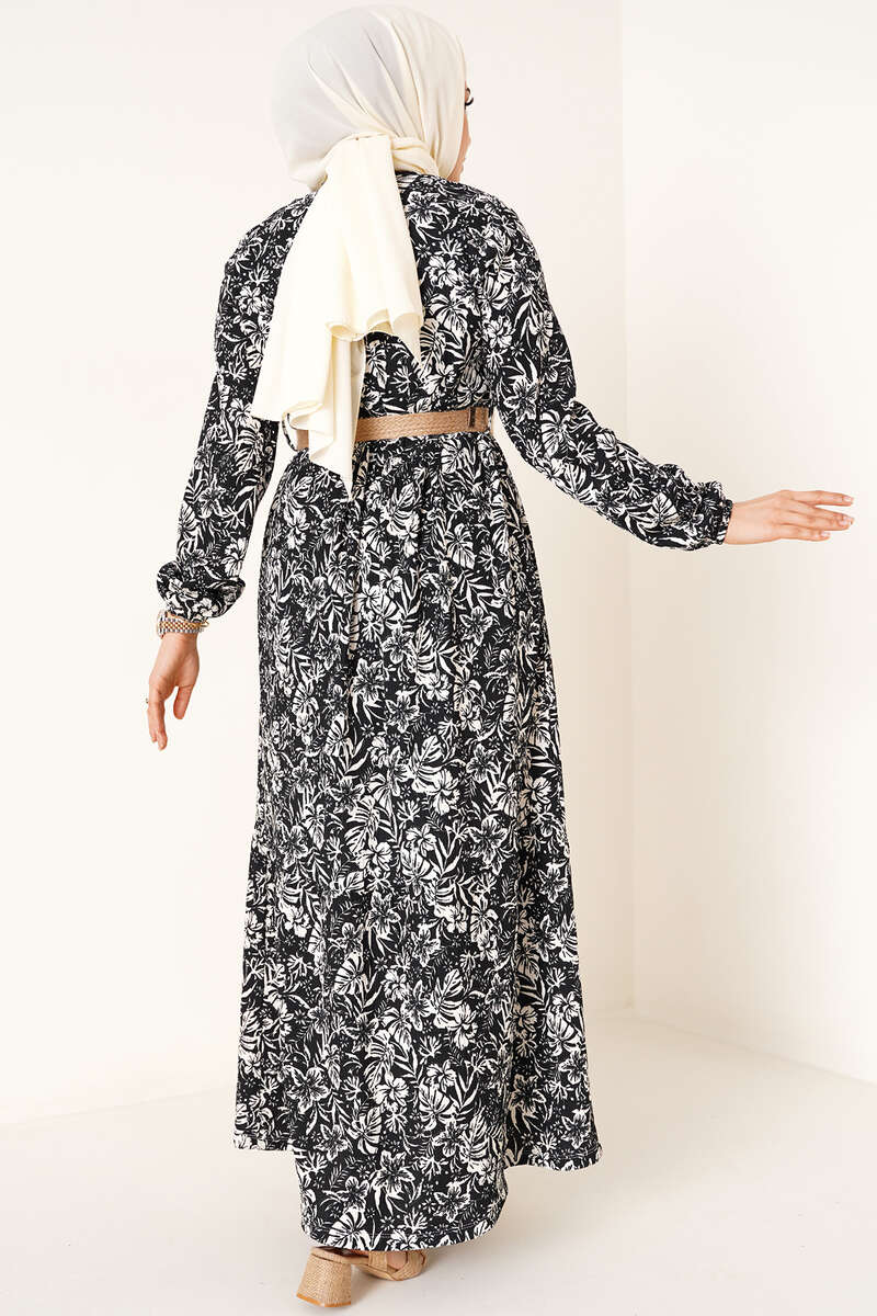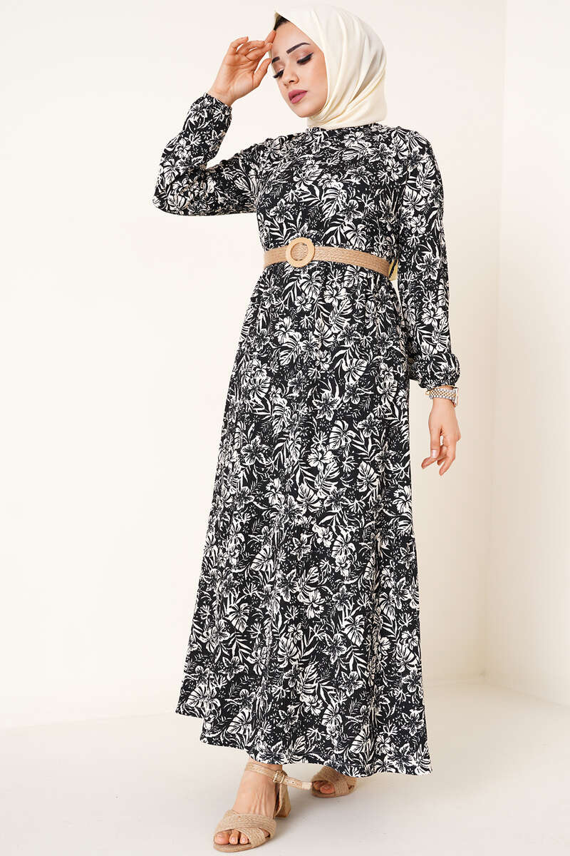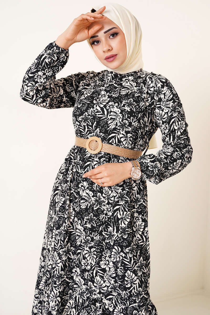 Yeni sezon elbisemiz çiçek ve yaprak desenlidir. Hasır kemerli elbisemizin iki adet kemer köprüsü bulunamkatdır. Oval yakadır. Bilekleri lastiklidir. Seoznun favorileri arasında olan elbisemiz tek parçada harika bir kombin yapmanıza olanak sağlayacaktır.