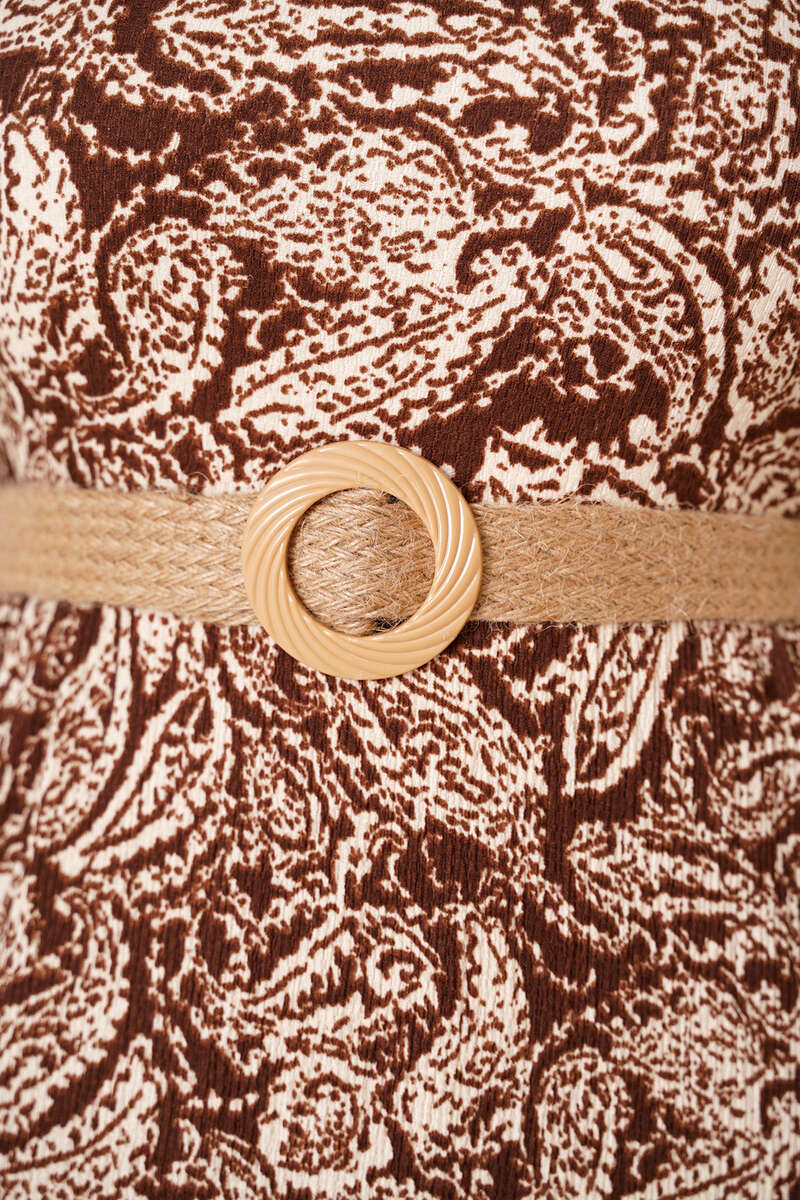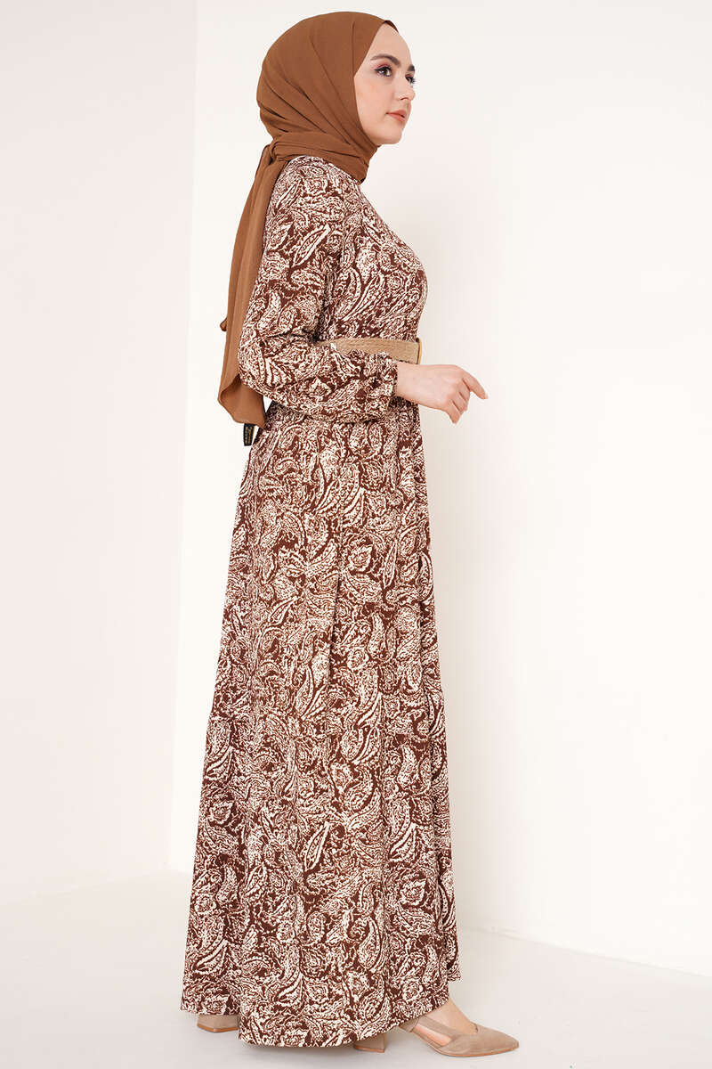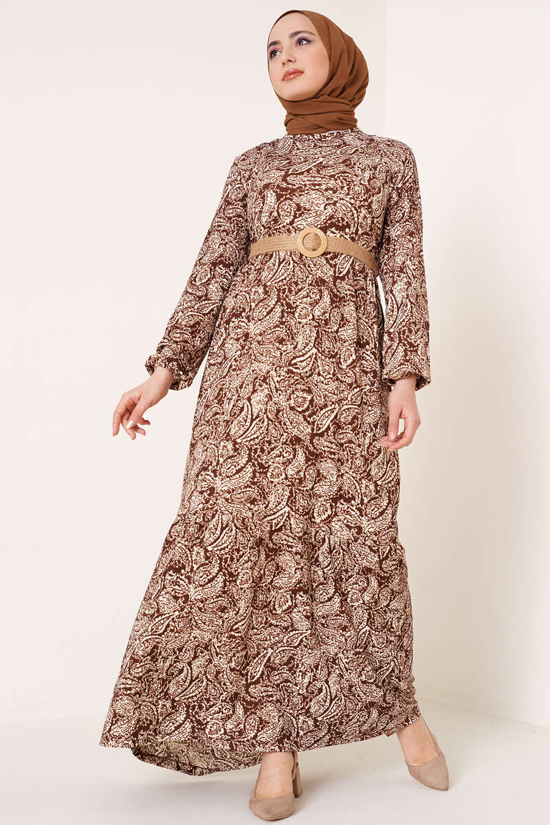 Bel Pensli İp Kuşaklı Elbise Kahve