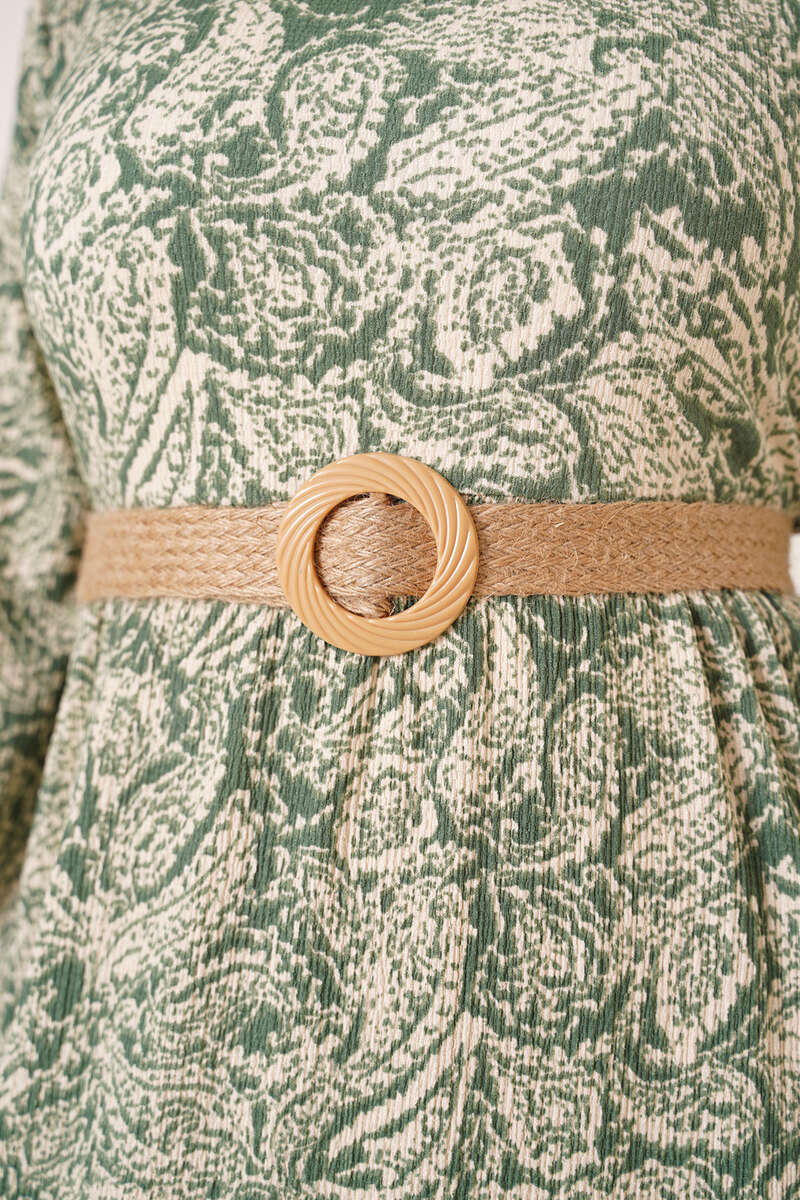 Bel Pensli İp Kuşaklı Elbise Kahve