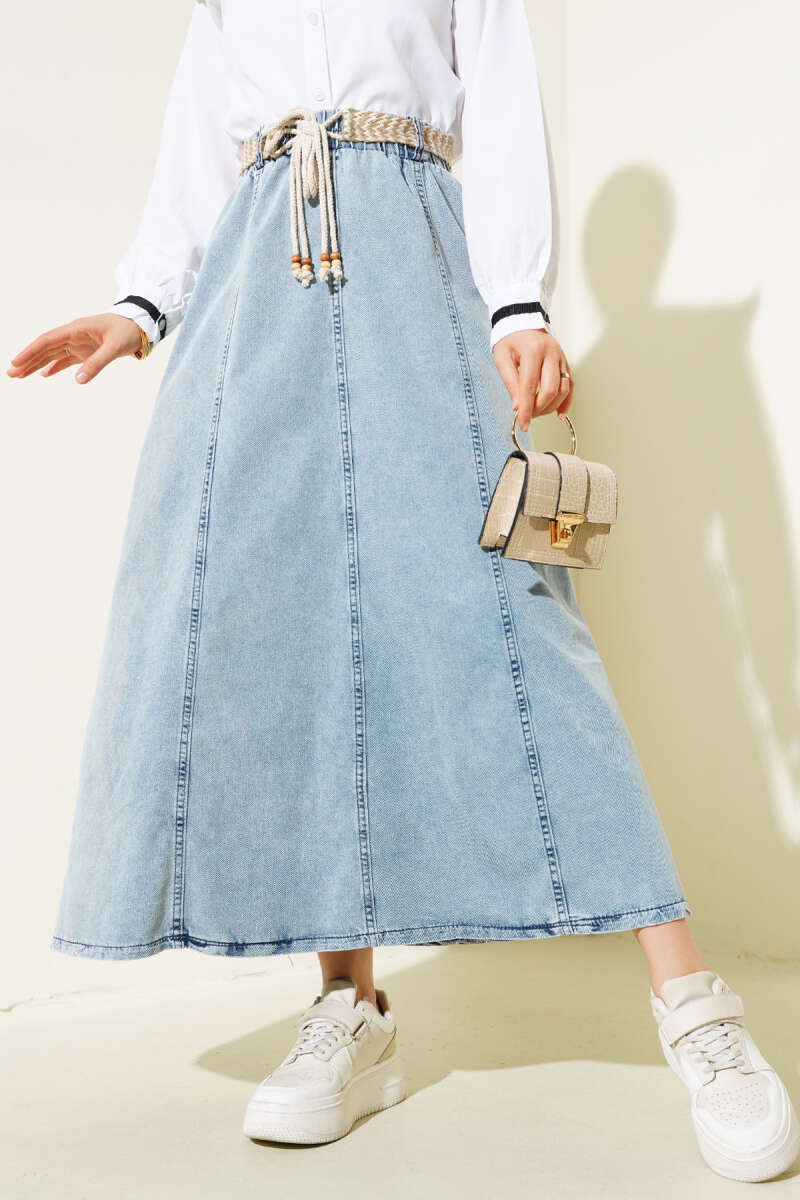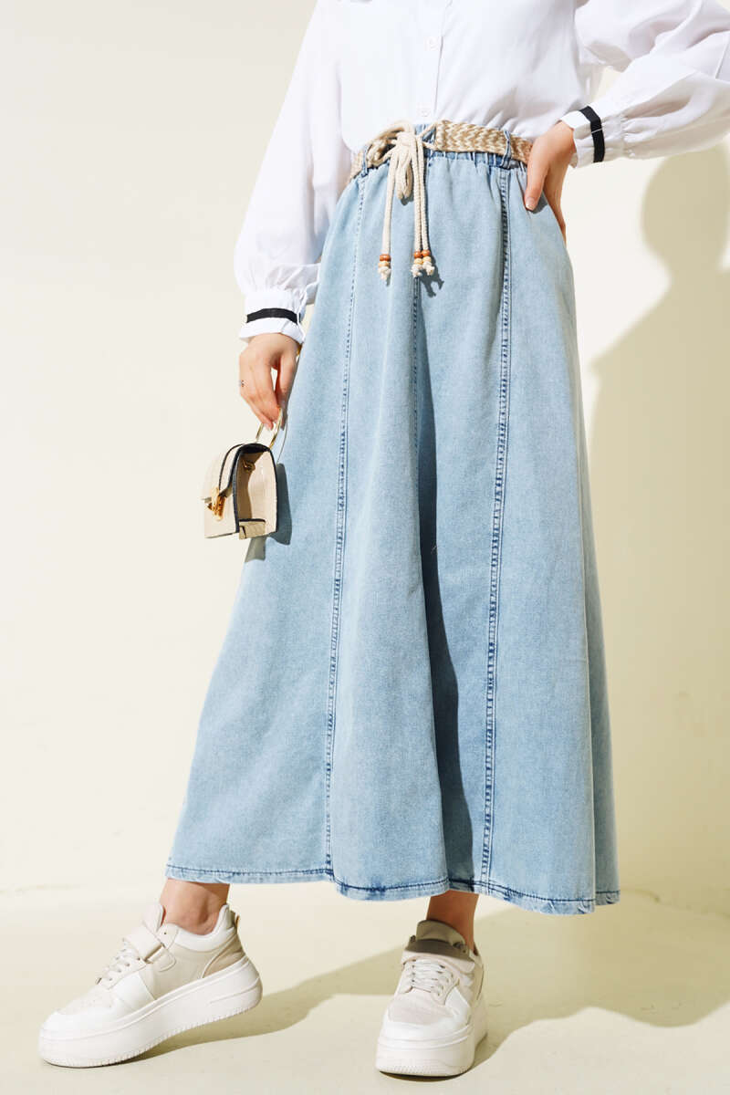 Beli Kemerli Lastikli Pileli Etek Kiremit