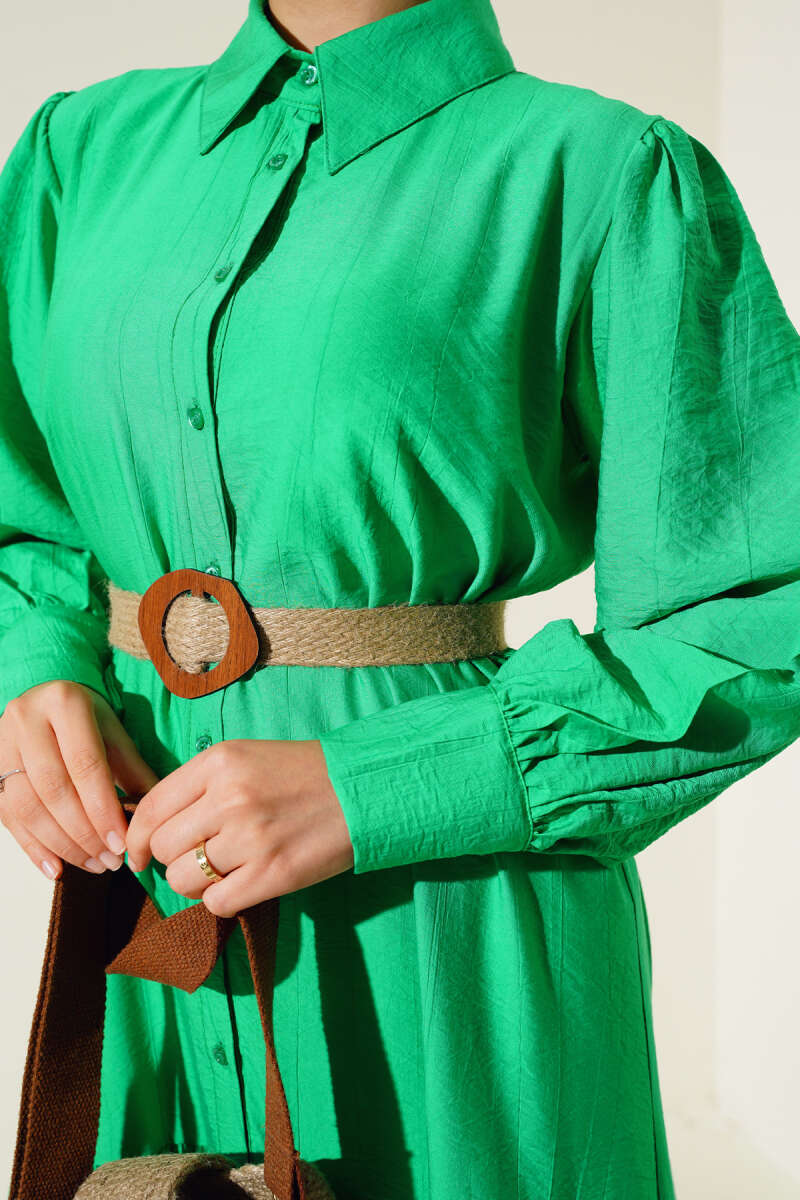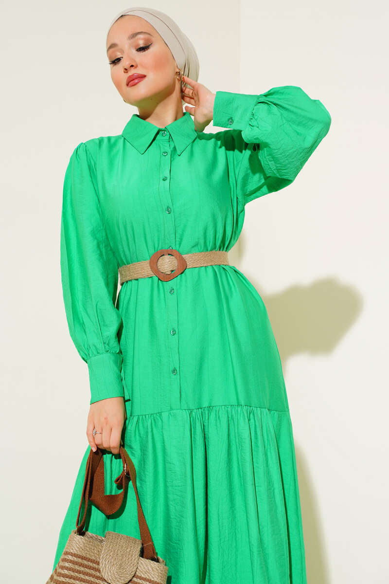 Scuba Pens Detaylı Kemerli Elbise Haki
