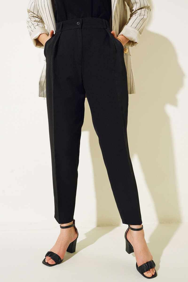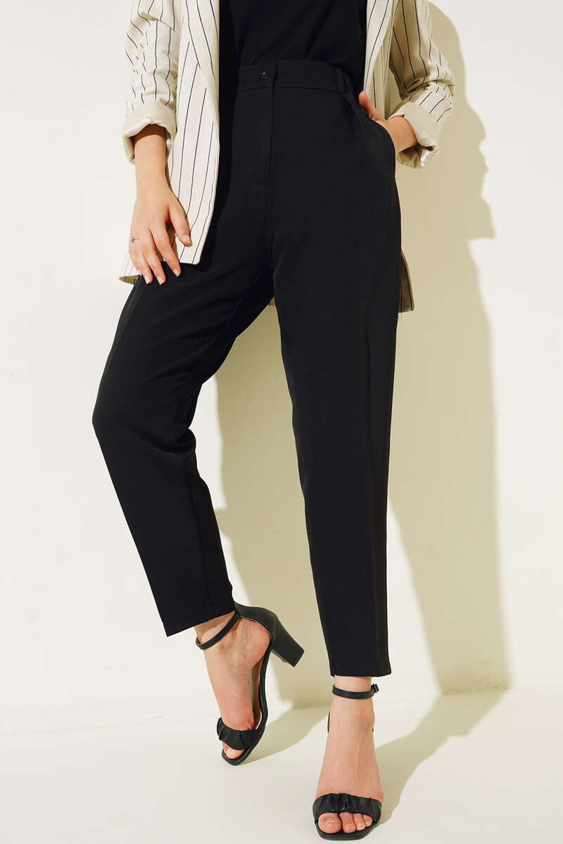 Yeni sezon havuç paça pantolonumuz sizlerle. Pantolonumuz iki adet cebe sahiptir. Pantolonumu, günlük kombinlerinize şık dokunuş yapmak istiyorsanız doğru tercih olacaktır.