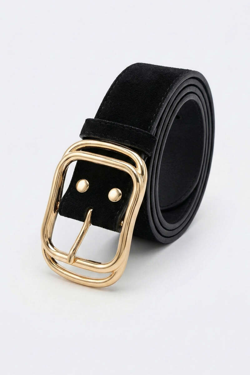 İç İçe Gold Tokalı Kemer Siyah Süet