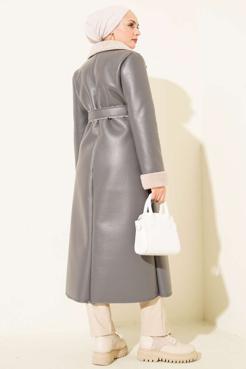 İçi Kürklü Deri Uzun Kaban Acı Kahve