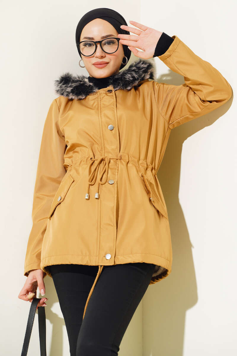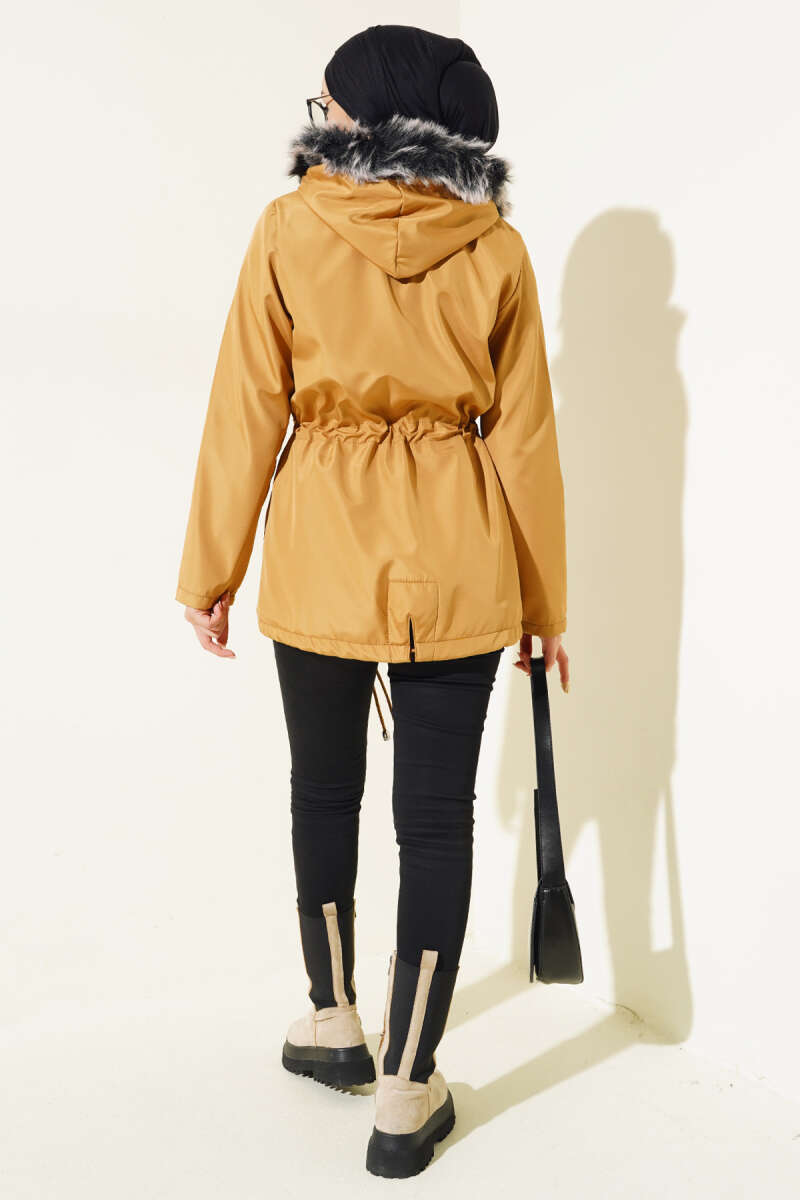 İçi Kürklü Kısa Mont Camel