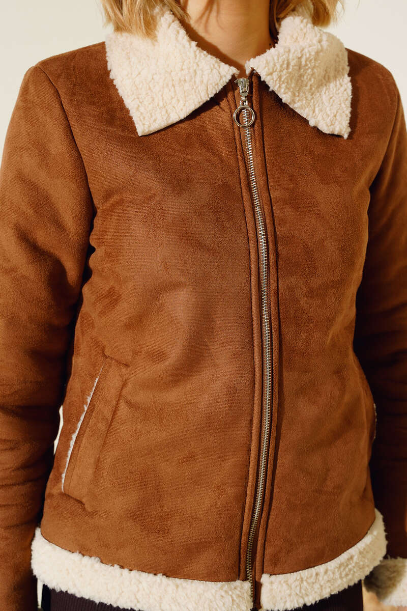 Yeni sezon süet montumuz sezonun favorileri arasında yerini alacaktır. Yakası ve içi kürklü modeldir. Boydan fermuarlıdır. İki adet yan cebi bulunmaktadır. Cepleri de fermuarlıdır. Süet kumaş olan montumuz kombinlerinizin yıldız parçası olacak.