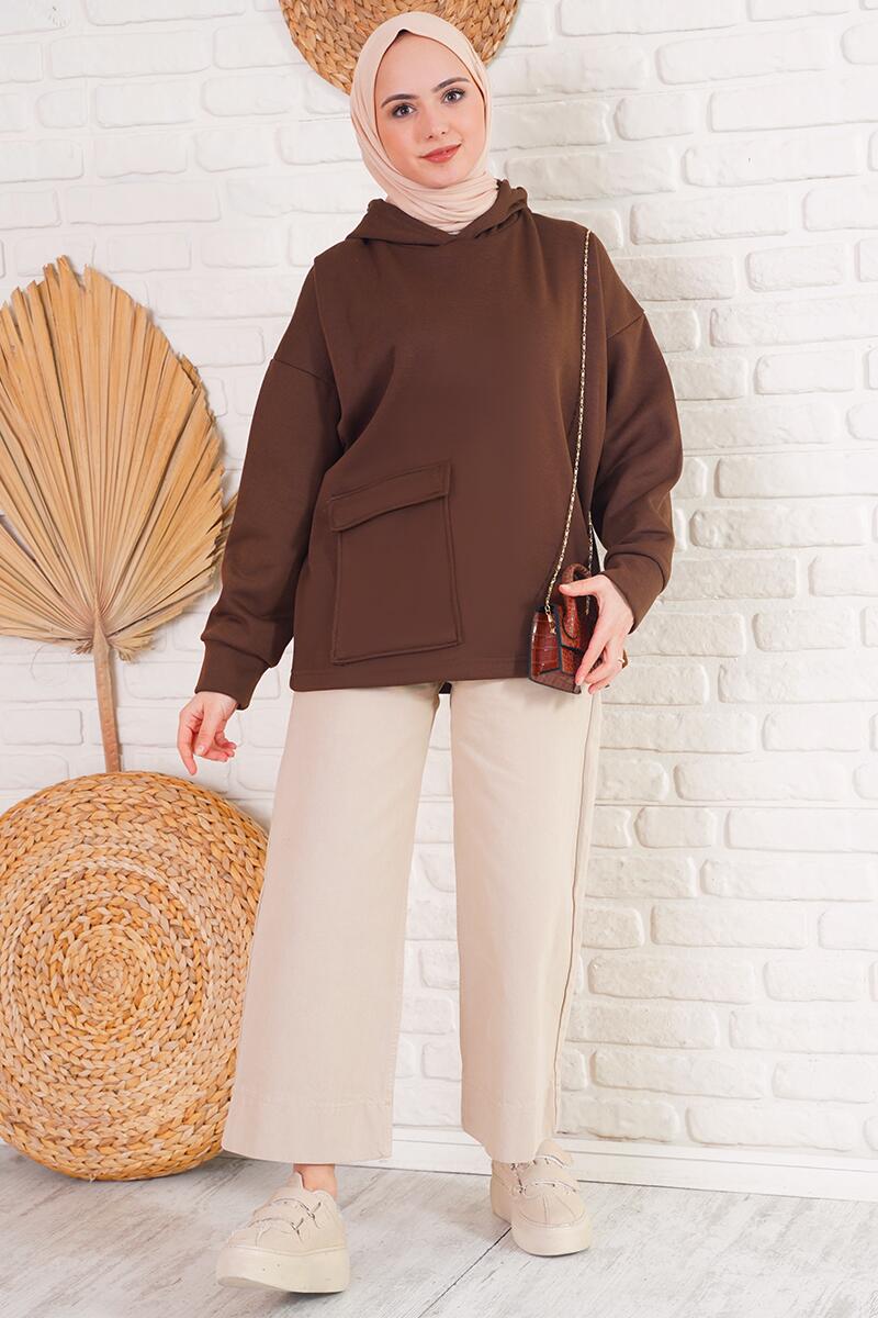İçi polarlı kapüşonlu kahverengi sweatshirt senin bu kış üşümene izin vermeyecek ! Ürünümüz düşük omuzludur. İçi polarlıdır. Kolları manşetlidir. Ön yüzünde bir adet kapaklı cebi bulunmaktadır.