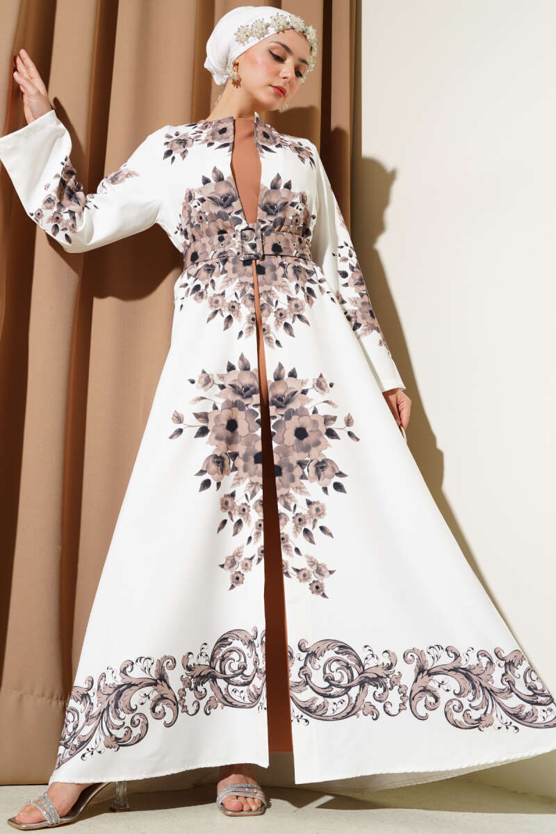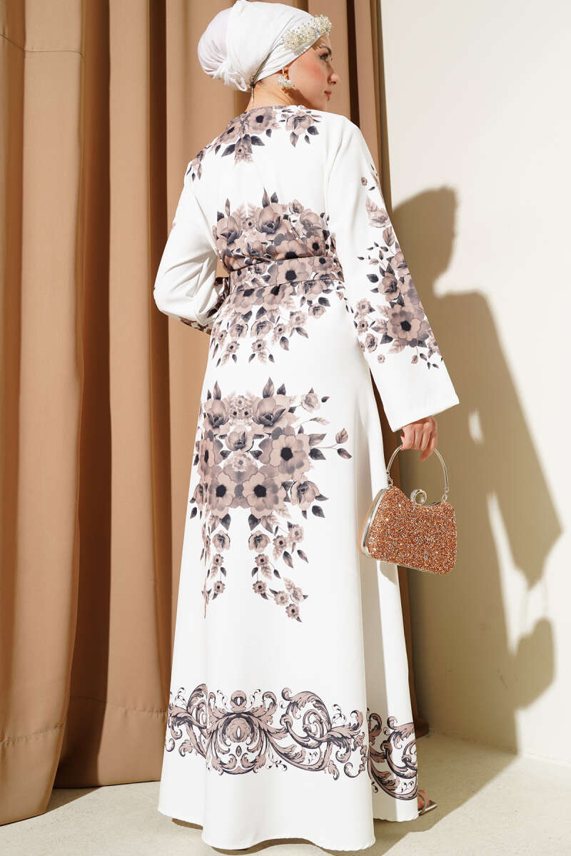Kuşağı Tül Detaylı Şifon Elbise Kahve