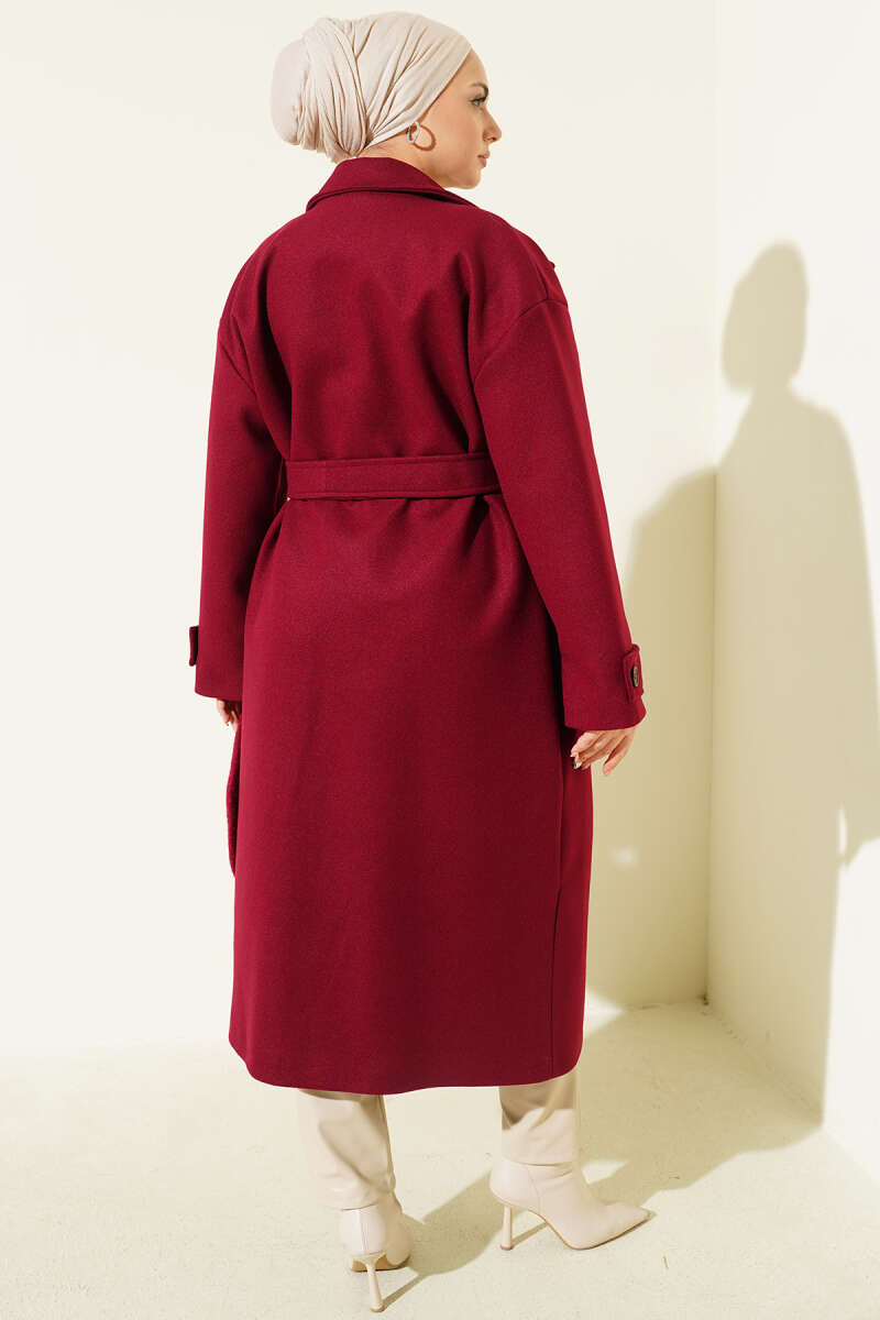 Deri Çıtçıtlı Sakallı Kuşaklı Ceket Bordo