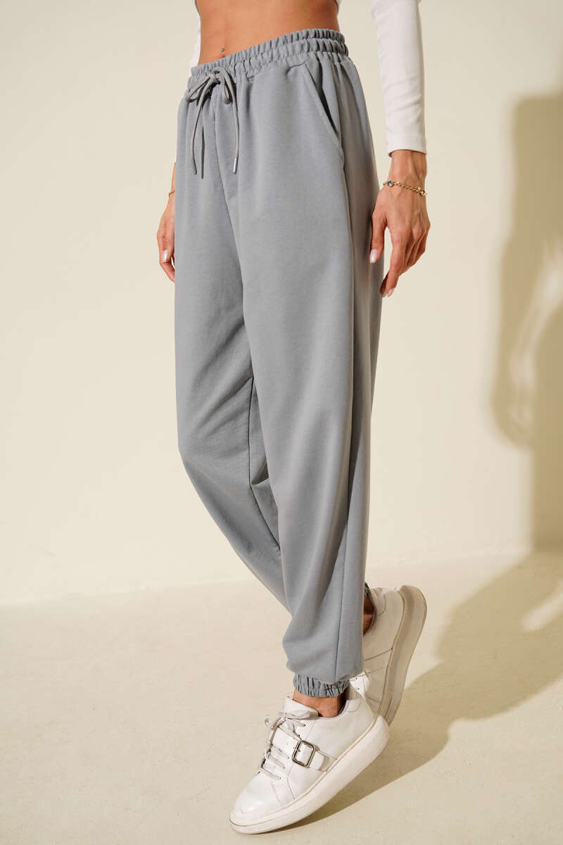 Ceketli Kruvaze Yaka İkili Takım Gri