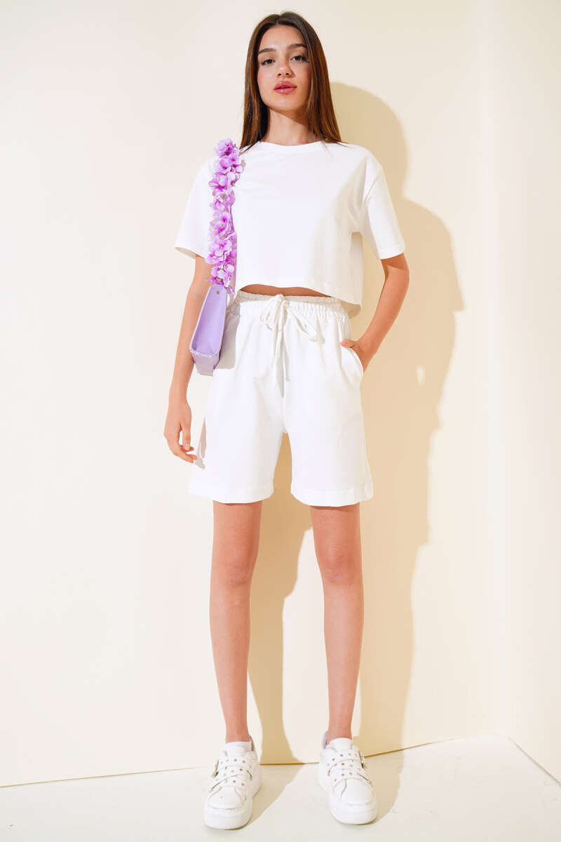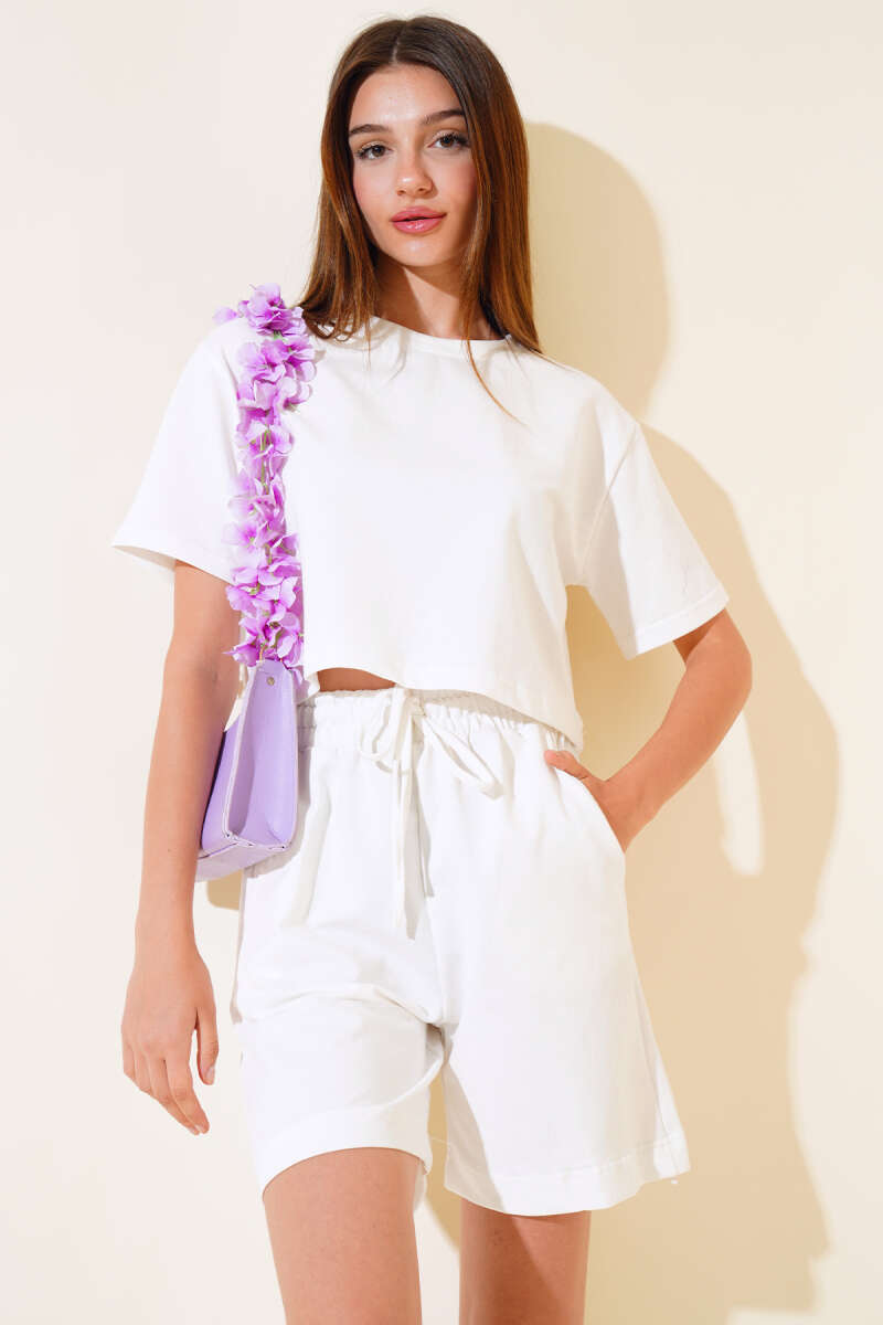 Yarım Fermuarlı Crop İkili Takım Siyah