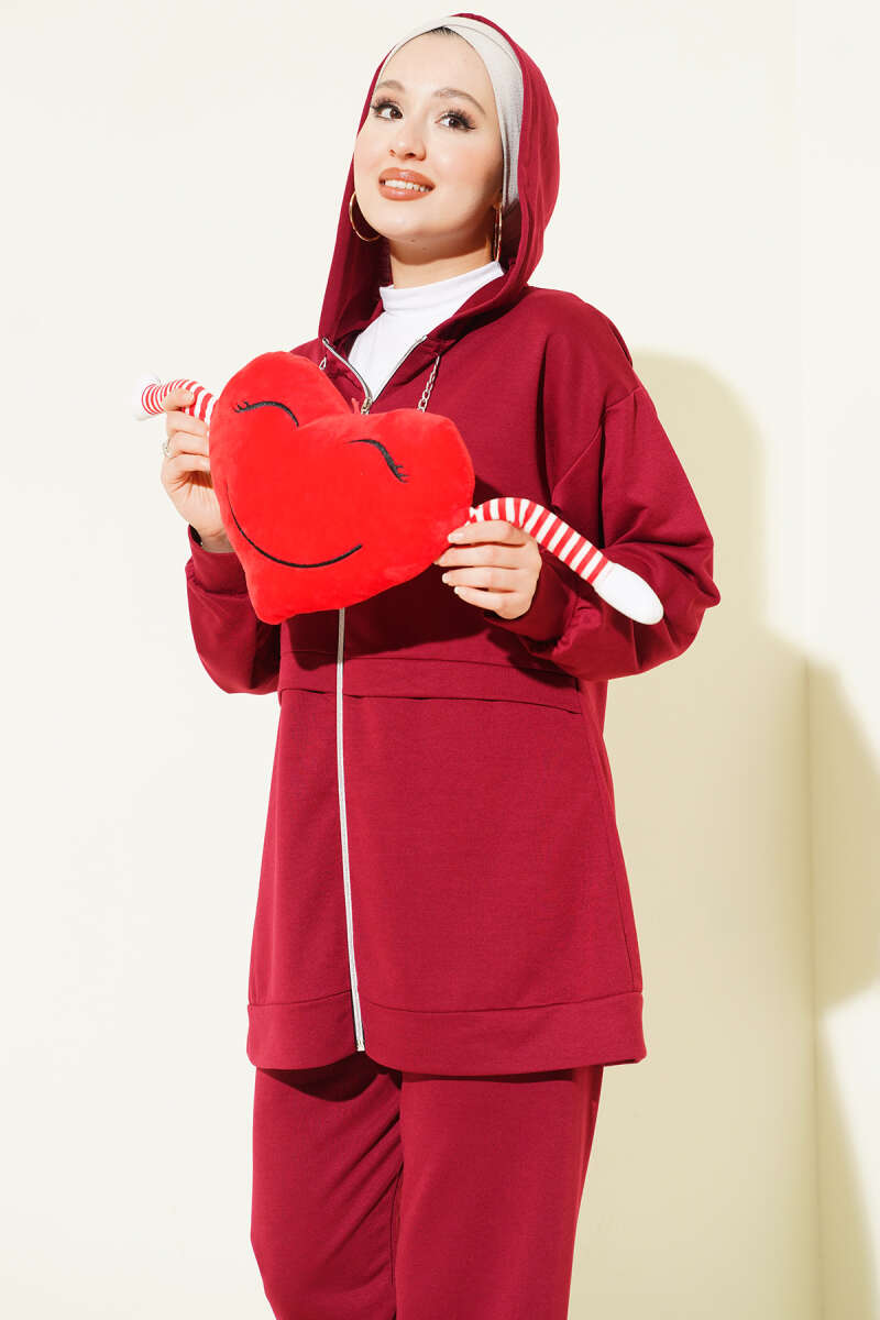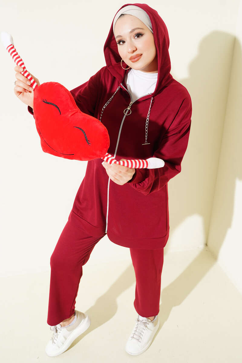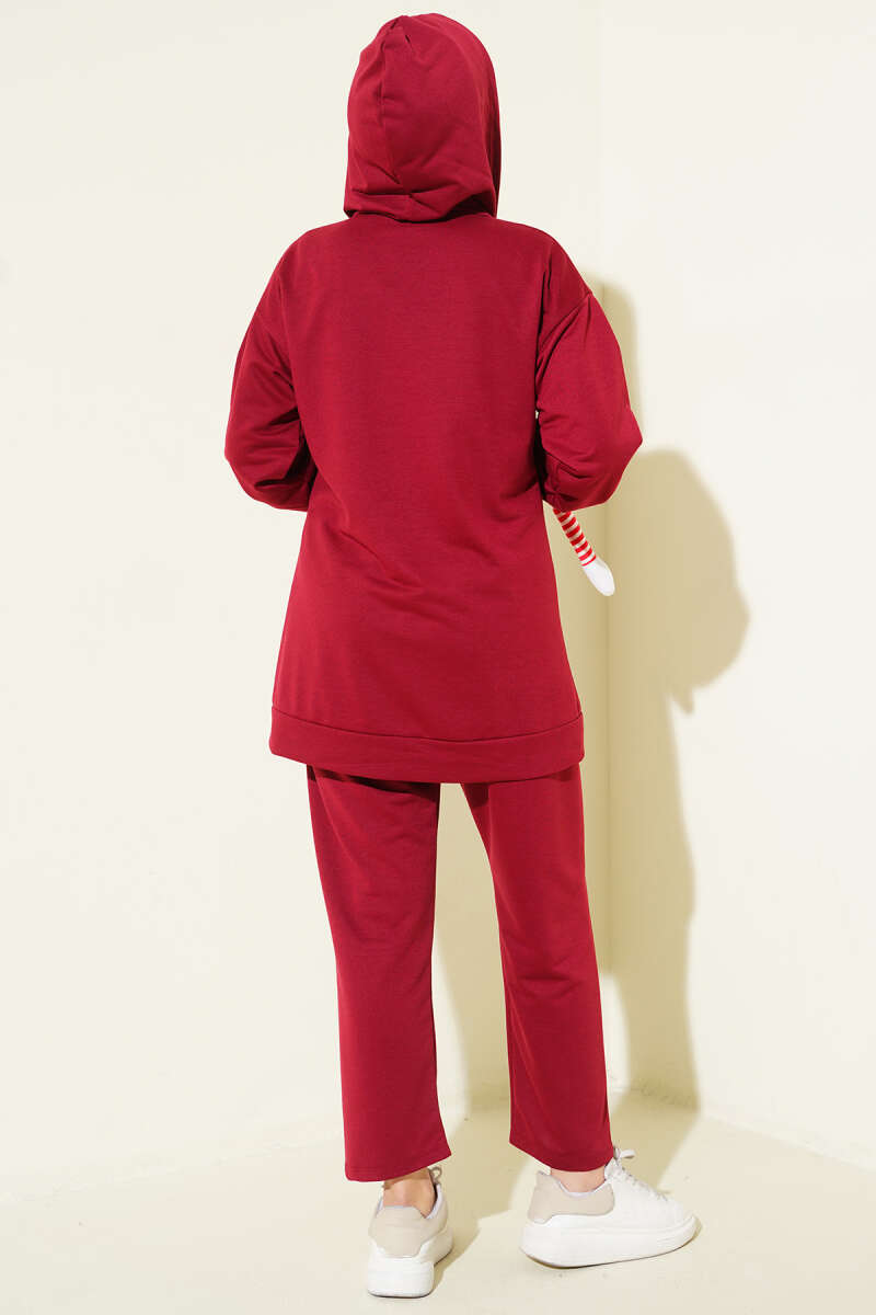 Yanları Düğmeli İki İplik İkili Takım Bordo