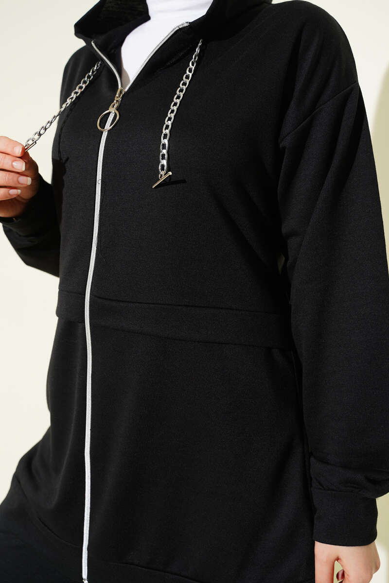Önü İncili Fermuarlı Loyşa İkili Takım Siyah