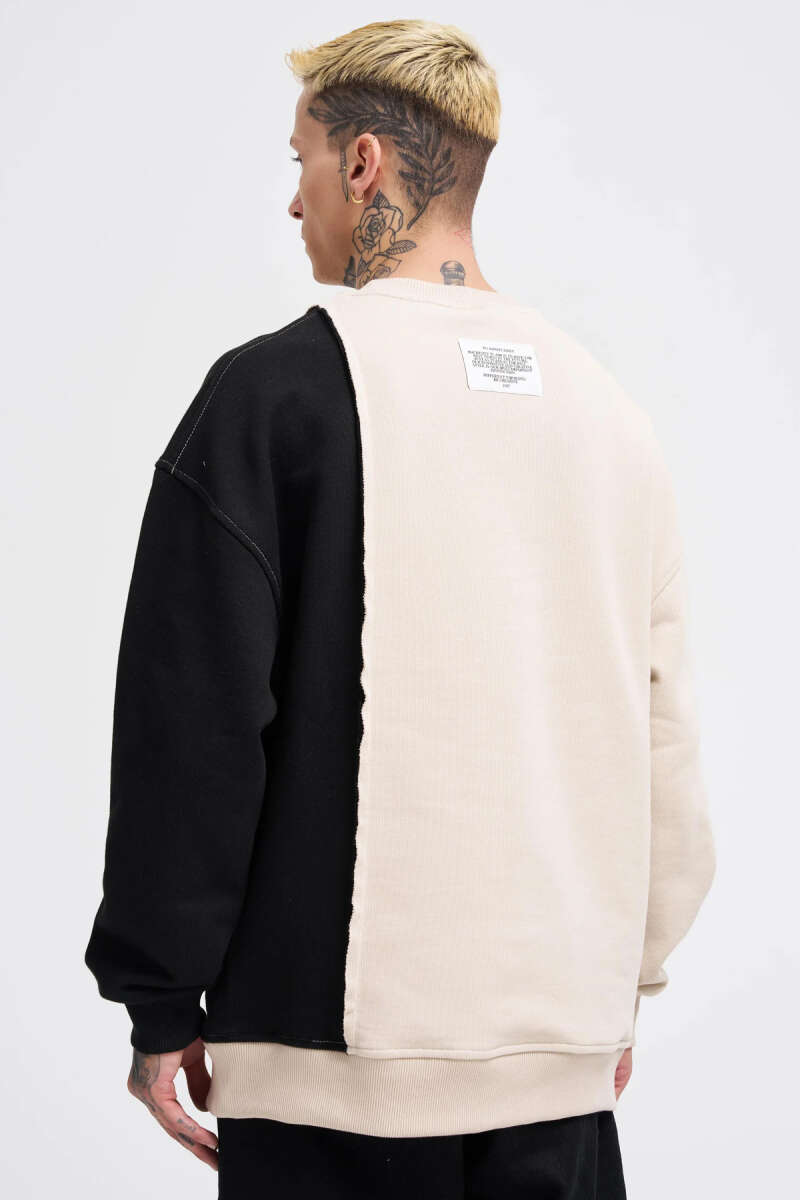 Blok Renkli Selanik Erkek Sweatshirt Siyah