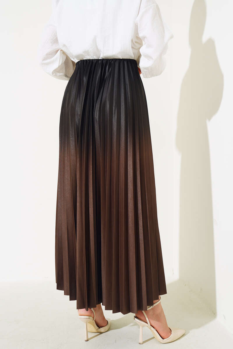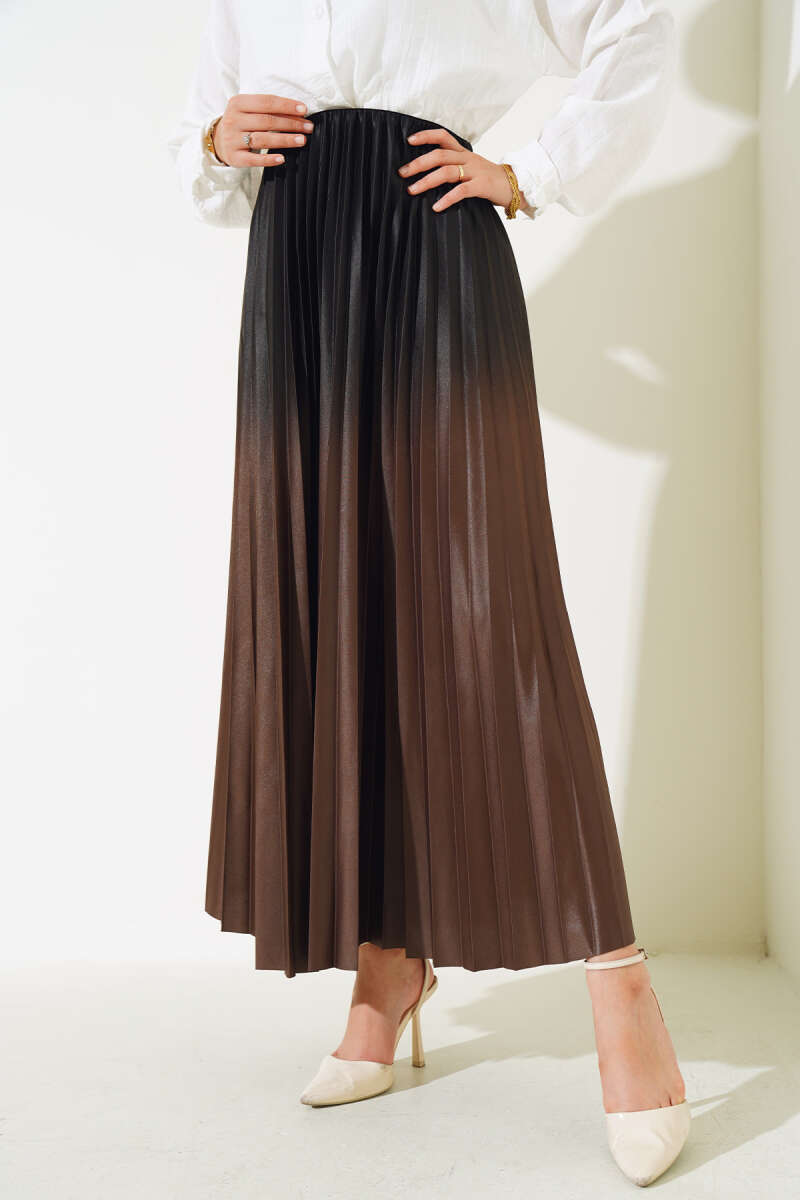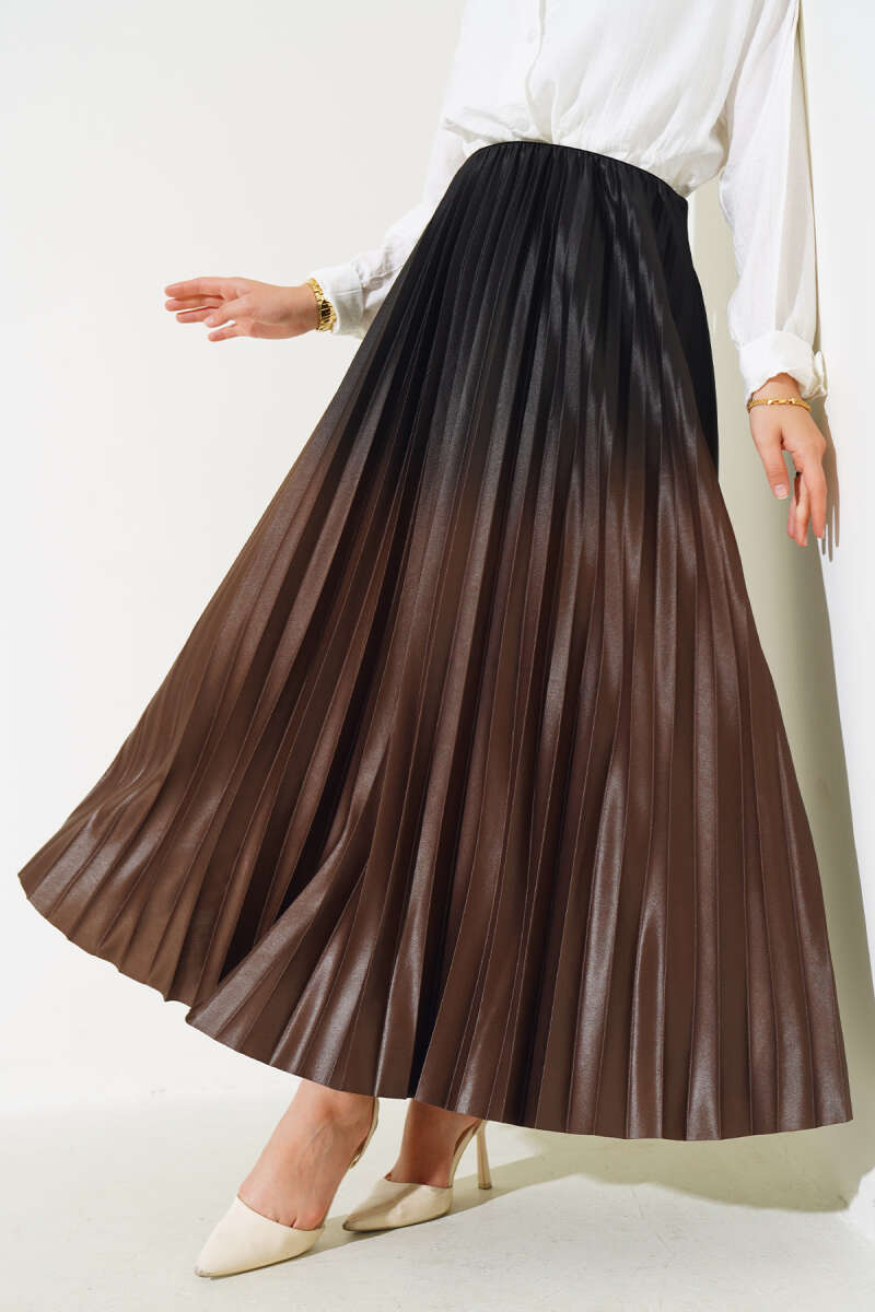 İnci Kemerli Pileli Etek Kahve