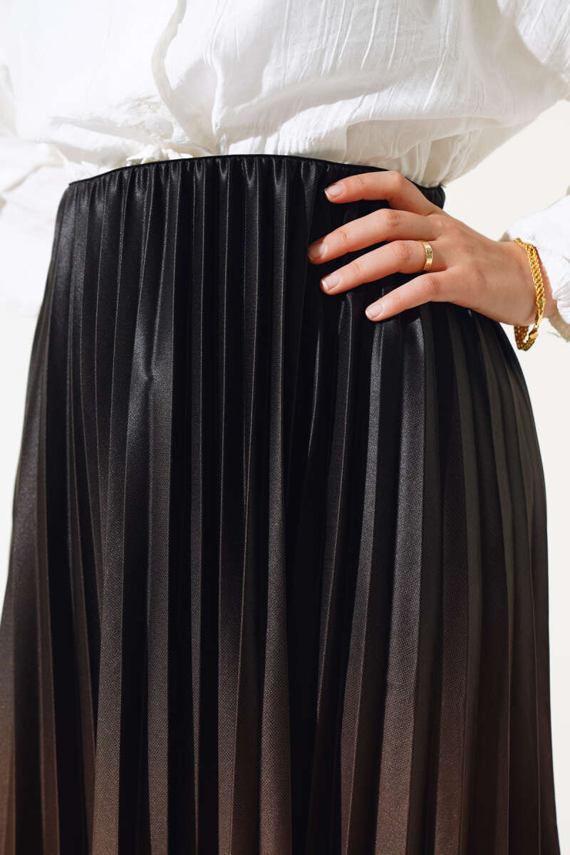 İnci Kemerli Pileli Etek Siyah