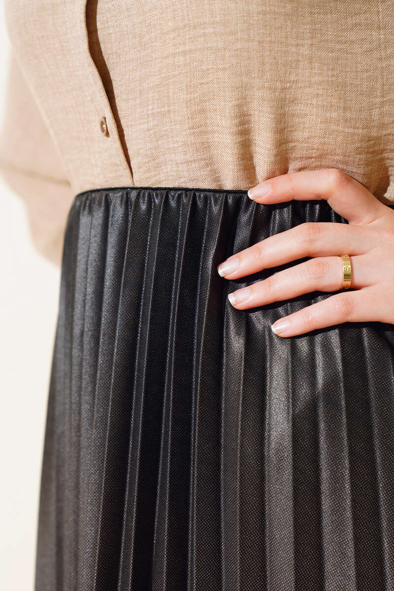 Yeni sezon etek modelimiz sizlerle beraber. Eteğimiz iki renk oluşuyla şıklık kazanmıştır. Pileli modeldir. Beli lastiklidir. Astarsızdır. Deri görünümlüdür. Şık ve sportif kombinlerinize çok yakışacak. Renk seçeneklerimiz mevcuttur.