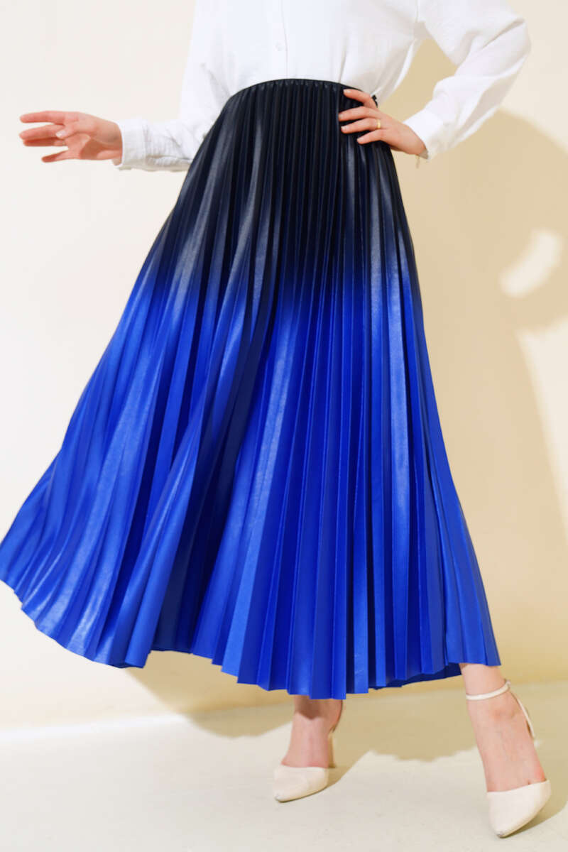 İki Renkli Pileli Etek Saks