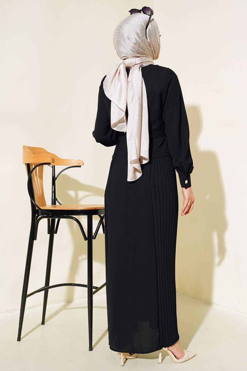 İki Yanı Piliseli Elbise Siyah