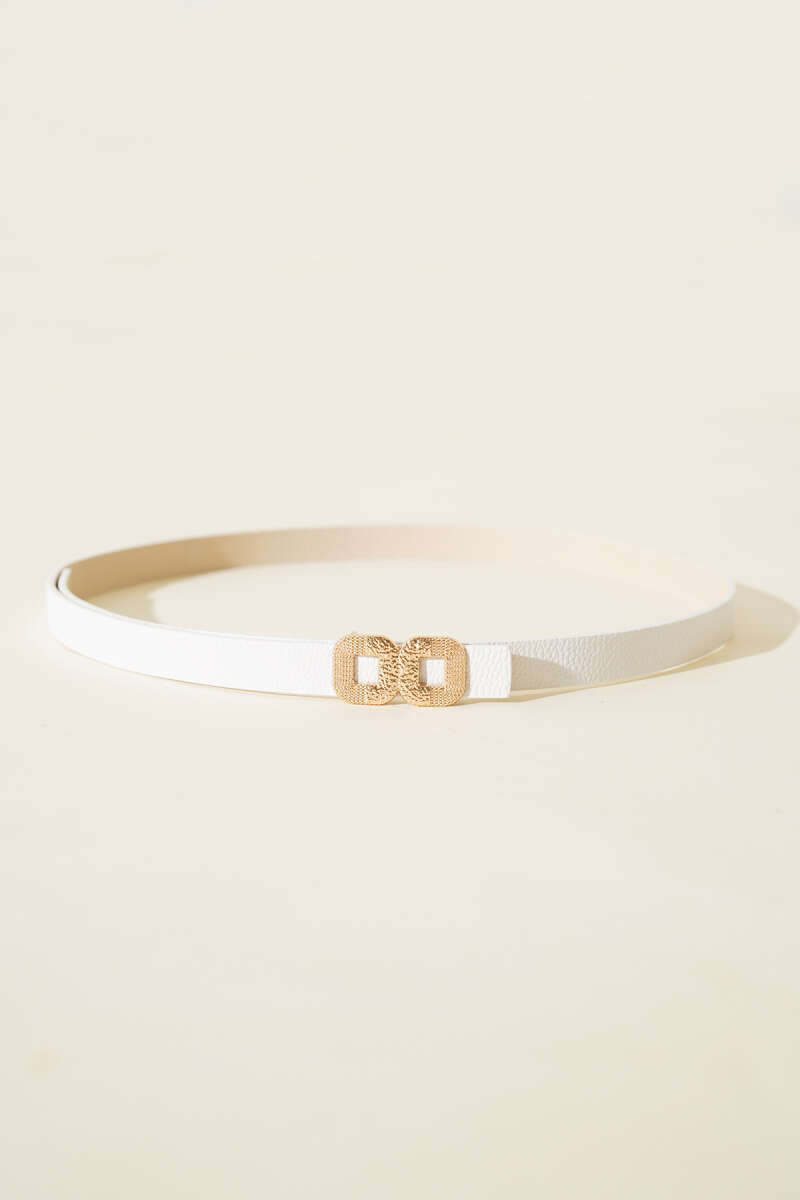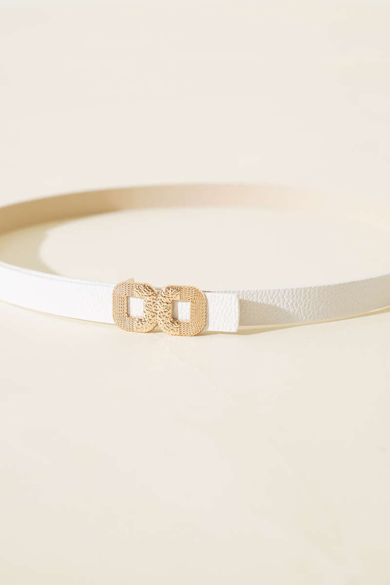 İkili Kare Tokalı İnce Kemer Beyaz