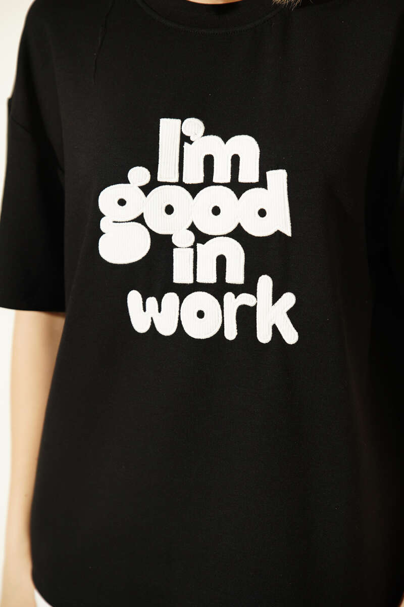 I'm Good in Work Nakışlı T-shirt Siyah