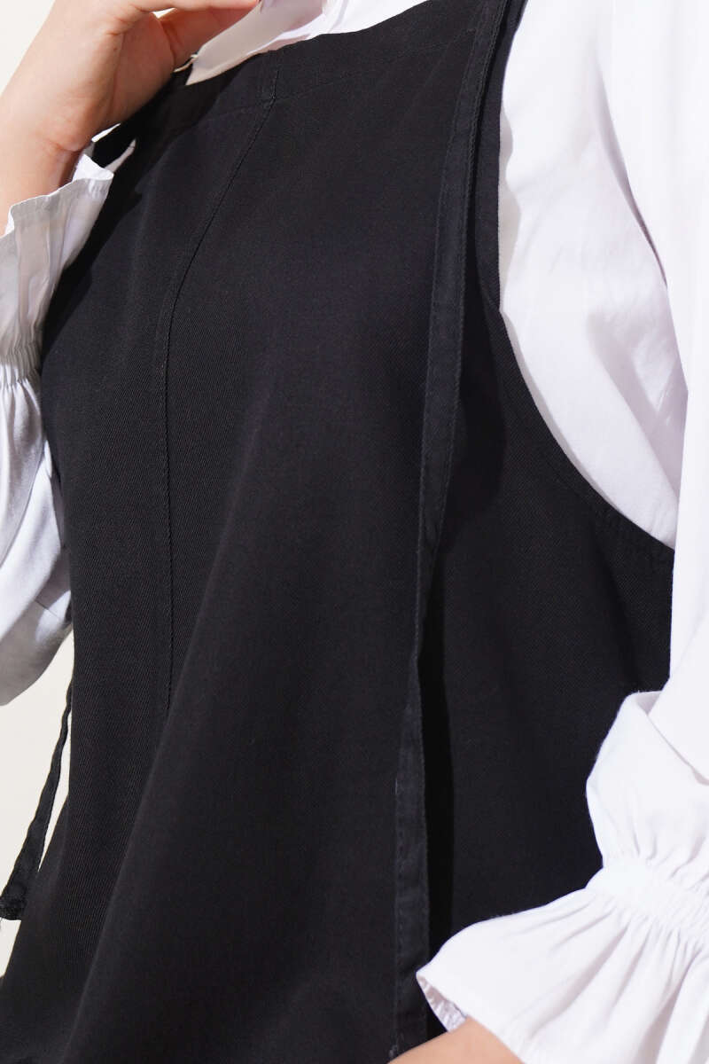 Kolları Fiyonk Detaylı Selanik Elbise Siyah