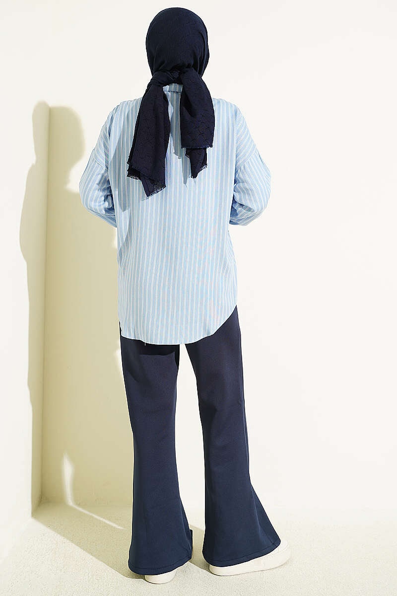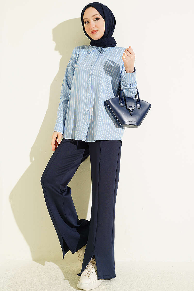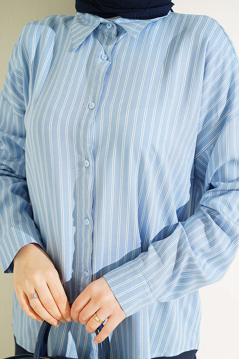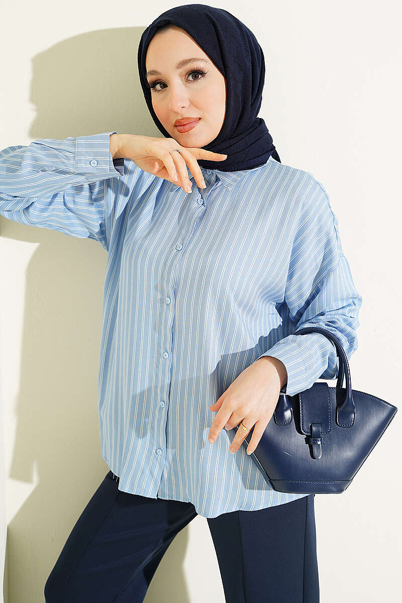 Viskon kumaşın nefes alan, yumuşak dokusuyla tasarlanan bu gömlek, boydan boya uzanan ince çift çizgili deseniyle klasik bir şıklık sunuyor. Dökümlü ve rahat kalıbı sayesinde gün boyu konforlu bir kullanım sağlarken, standart gömlek yakası ve düğmeli manşetleri tasarıma profesyonel bir dokunuş katıyor. Hem ofis kombinlerinde kumaş pantolonlarla hem de günlük stilde kot pantolonlarla zahmetsizce uyum sağlayan çok yönlü bir parçadır. Hafif yapısı ve zamansız çizgileriyle her mevsim gardırobunuzun vazgeçilmez temel ürünlerinden biri olmaya adaydır.