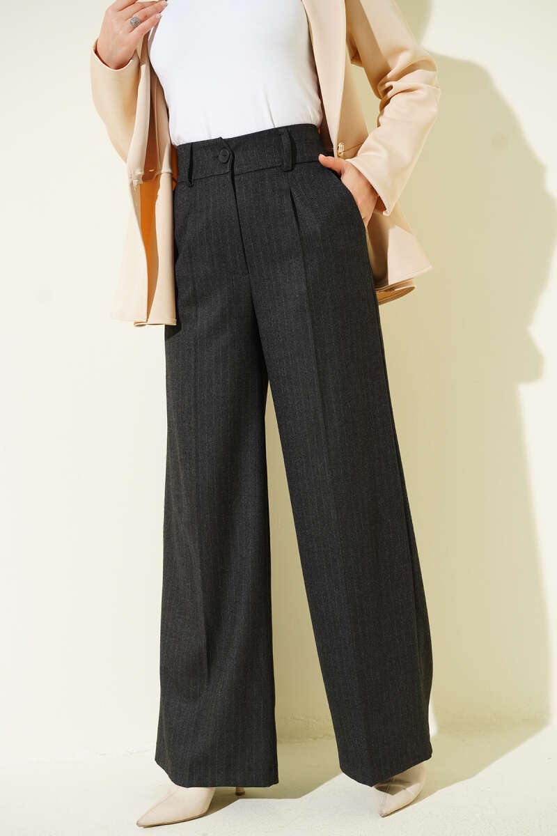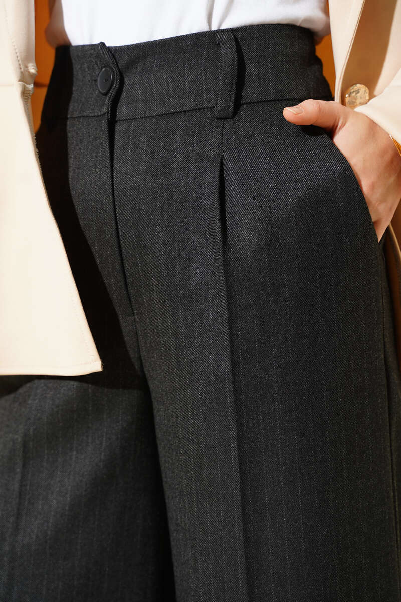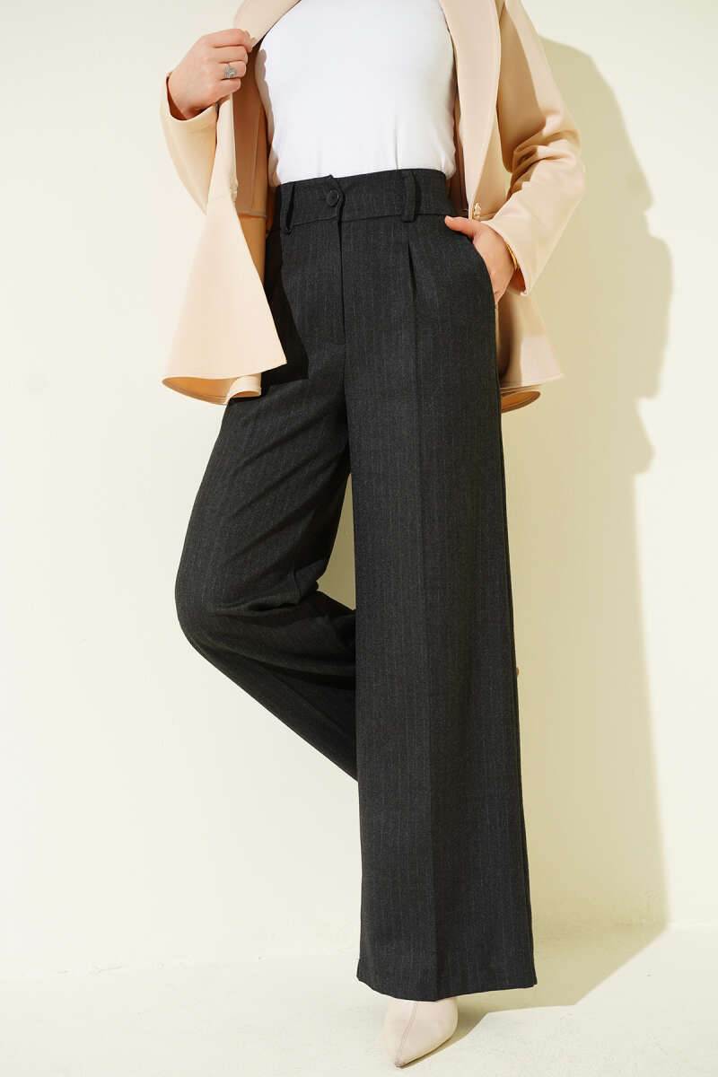 Bel Lastikli Çımalı Loyşa Pantolon Siyah