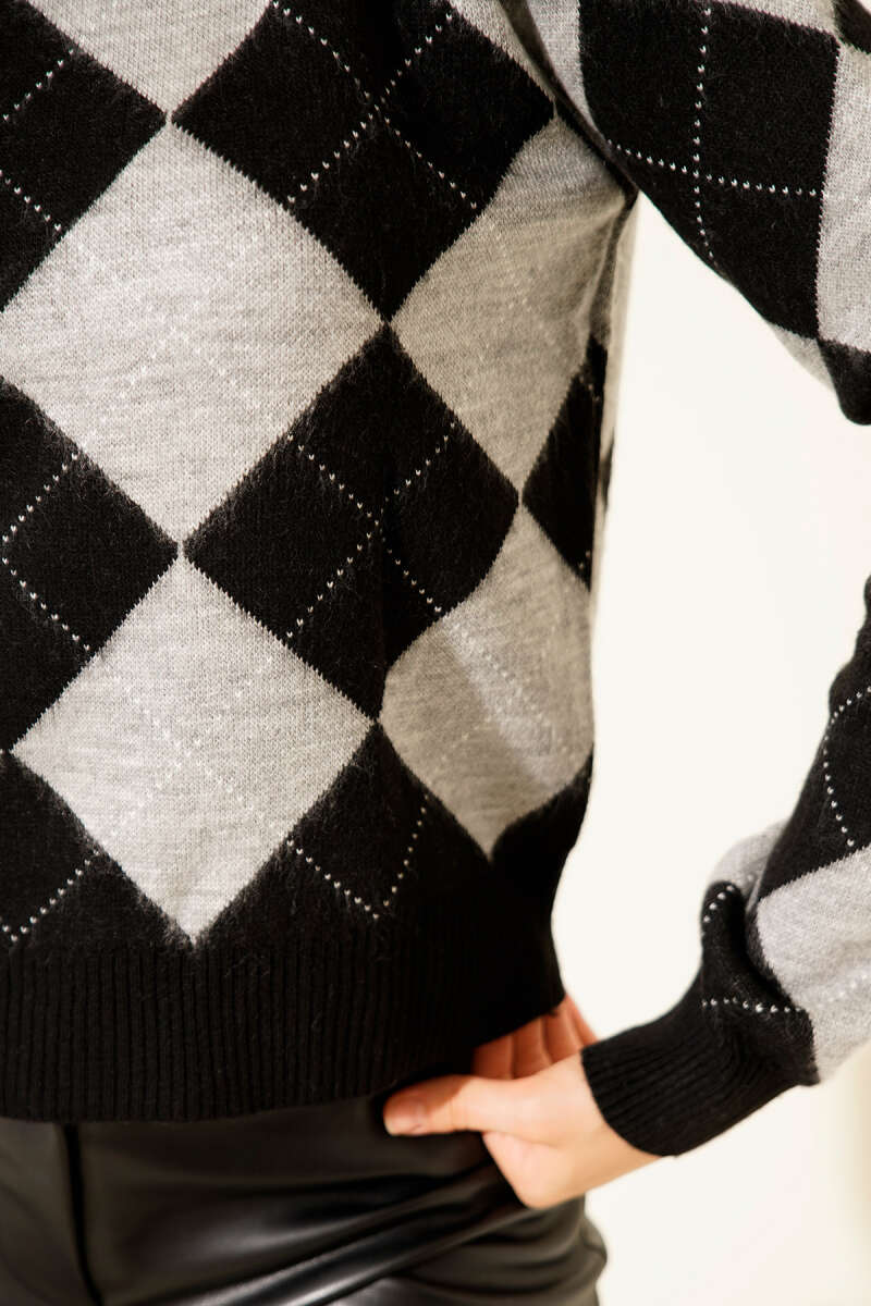 Taş Detaylı Triko Kazak Siyah