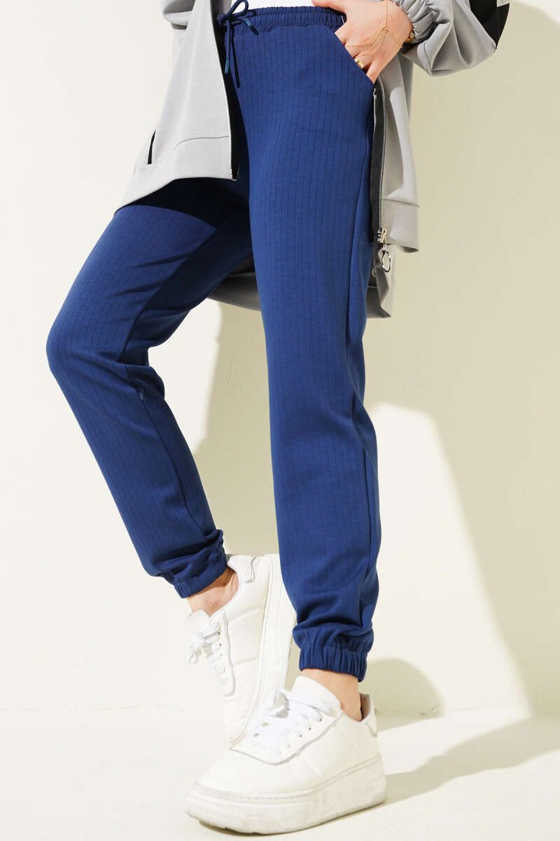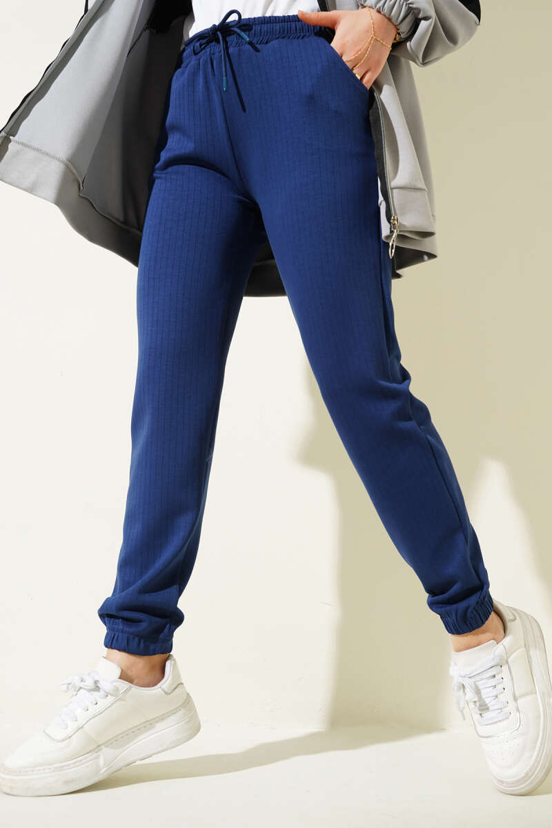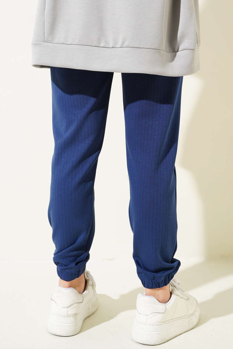 İnce Çizgili Bel İpli Jogger Pantolon Lacivert