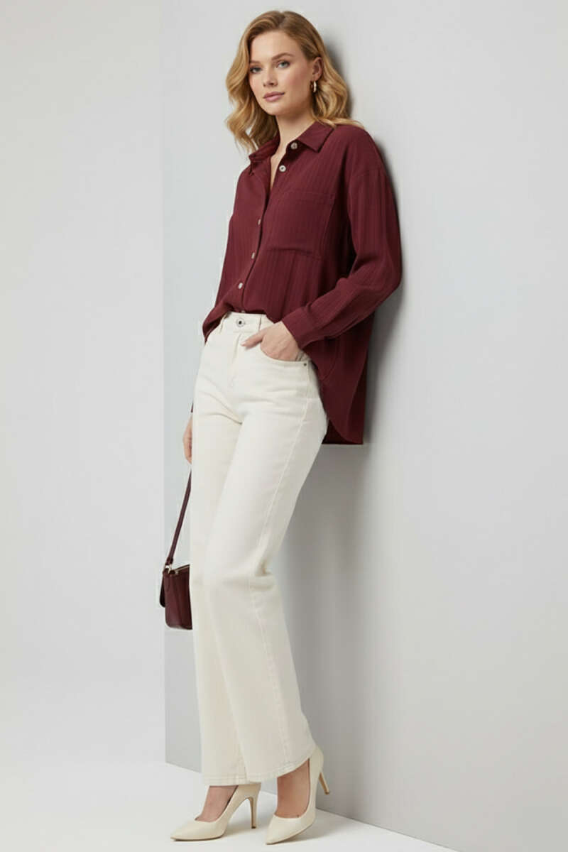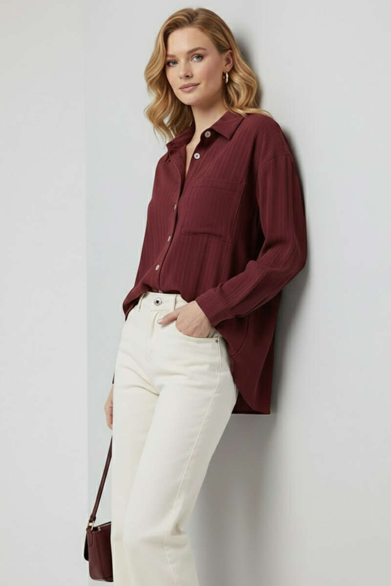 Gömlek Yaka Basic Düğmeli Gömlek Bordo