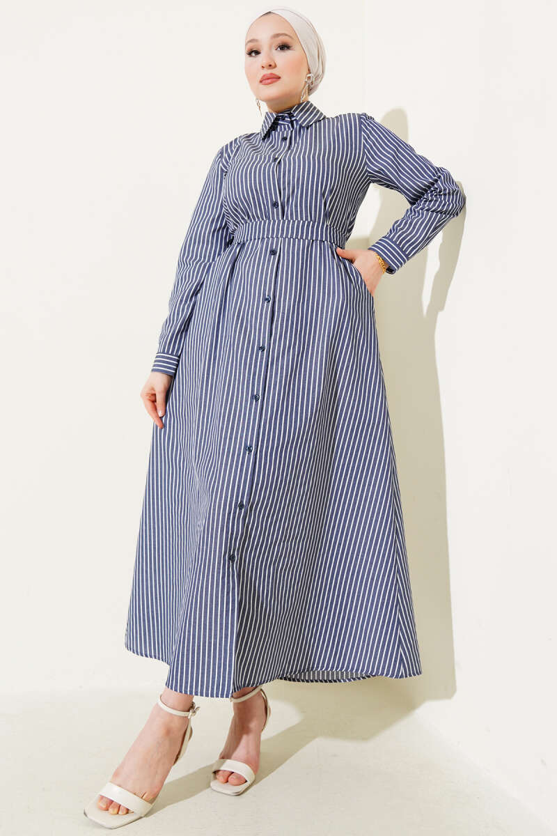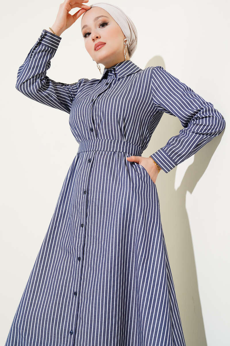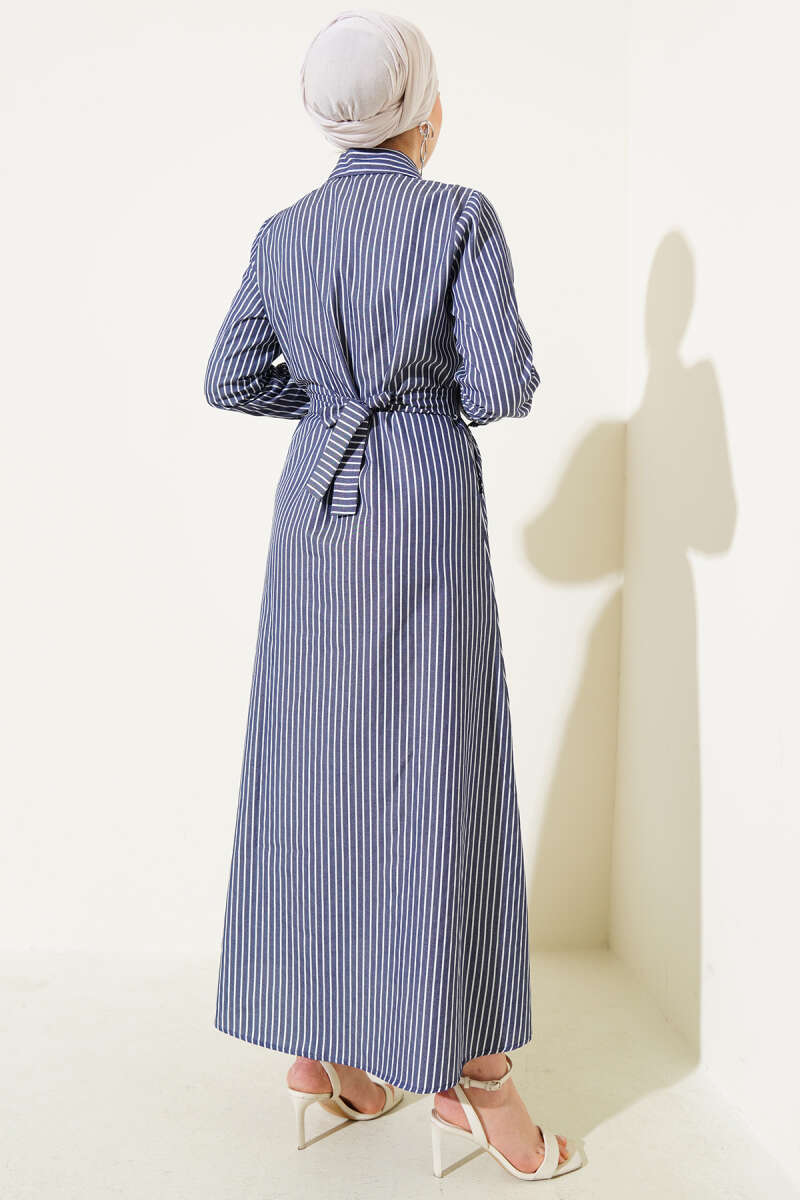 Omuz Pelerinli Taş Detaylı Abiye Elbise Lacivert