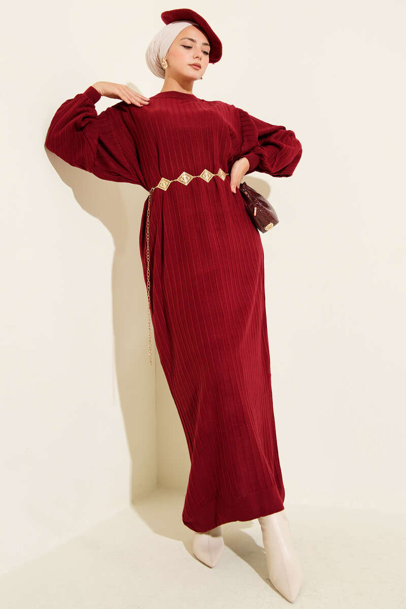 Bilek Tül Bağcıklı Pul Payet Abiye Elbise Bordo