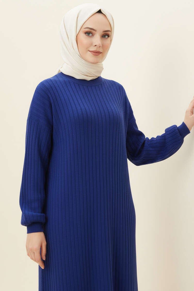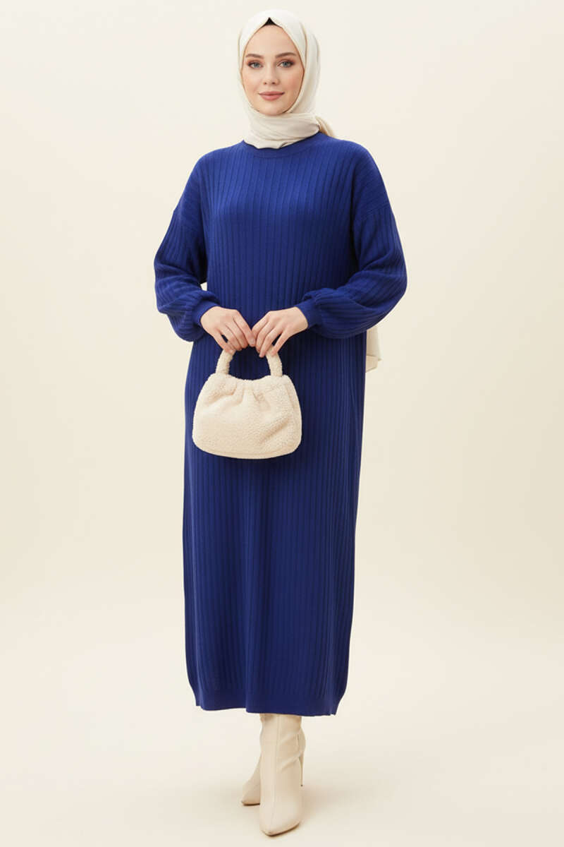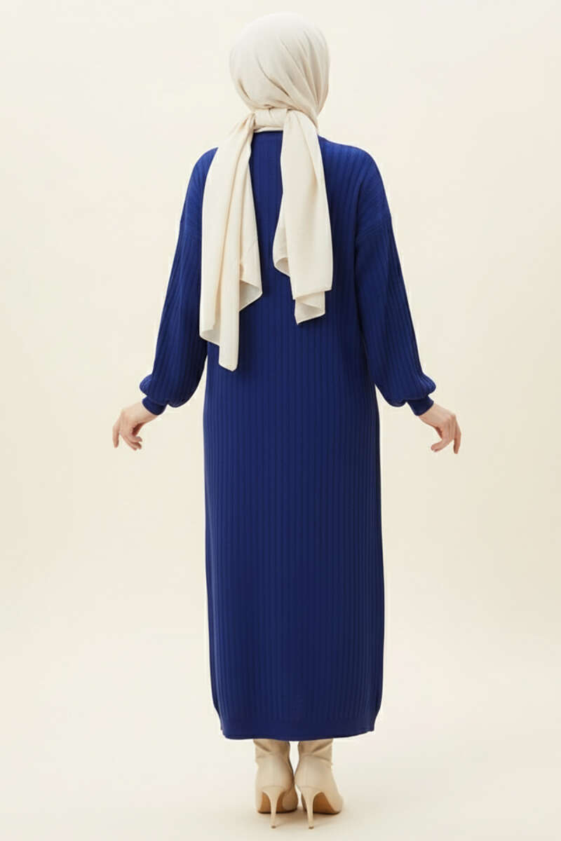 Yakası Yarım Fermuarlı Triko Elbise Lacivert
