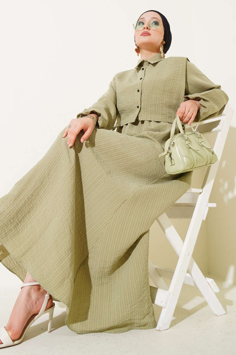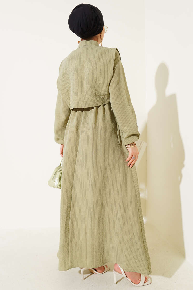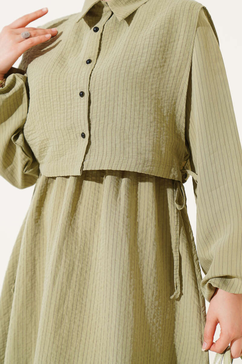 Kuşaklı Dik Fitilli Kaşe Elbise Haki