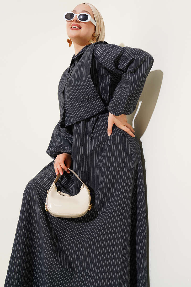 Kuşaklı Panço İkili Takım Füme