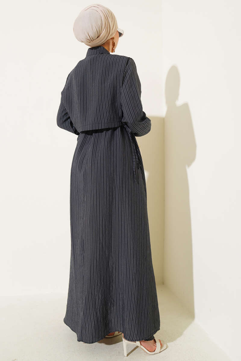 Kuşaklı Dik Fitilli Kaşe Elbise Siyah