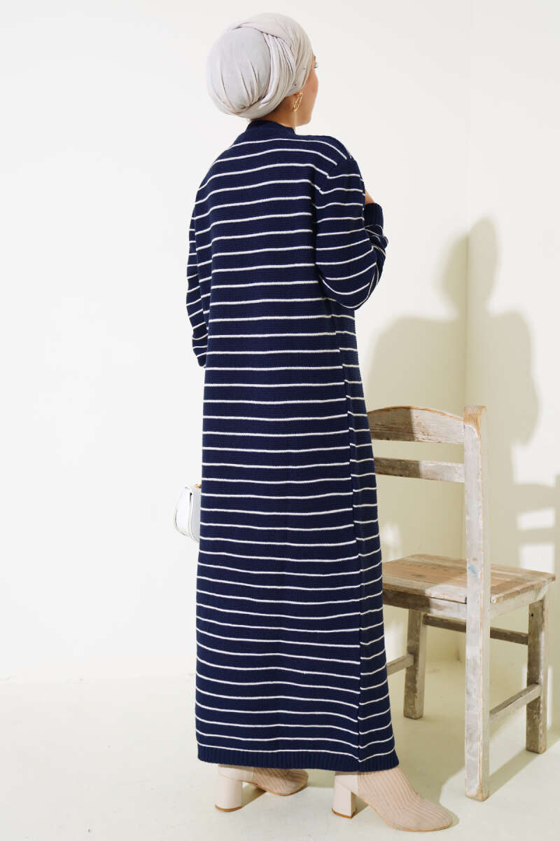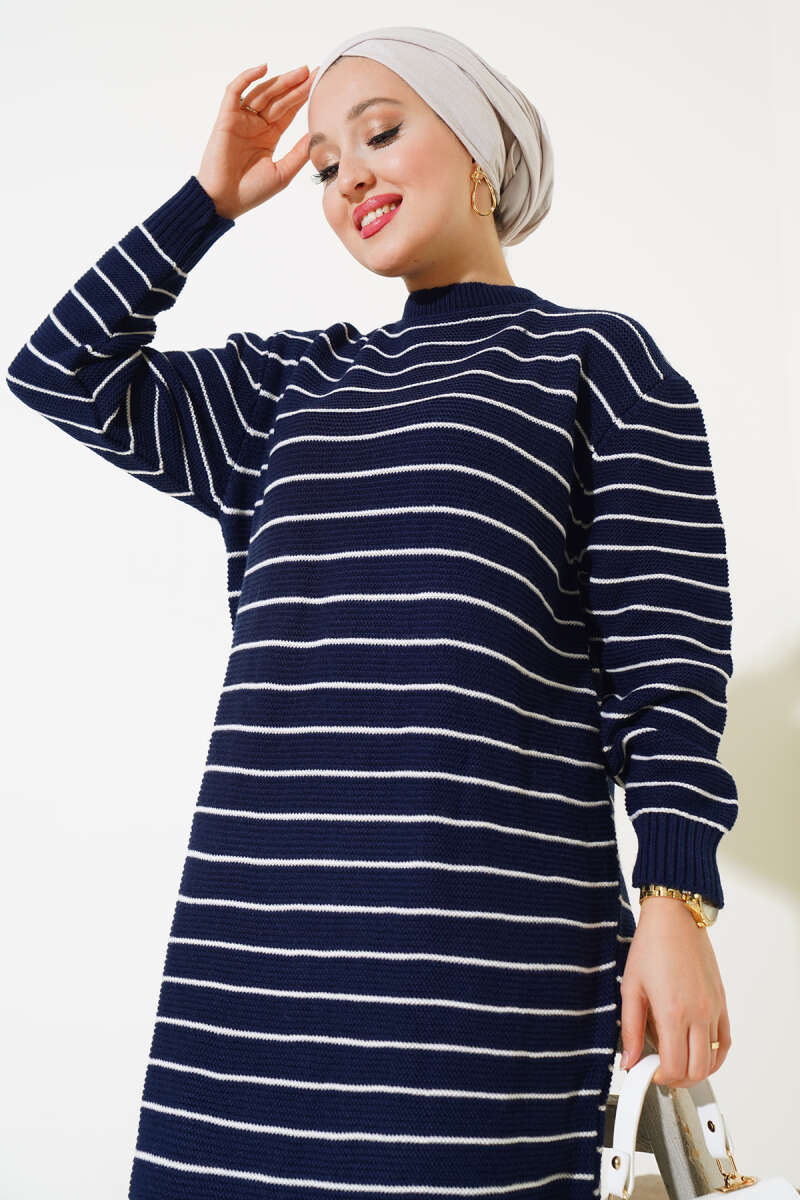 Şerit Ajur Desen Triko Elbise Bebe Mavi