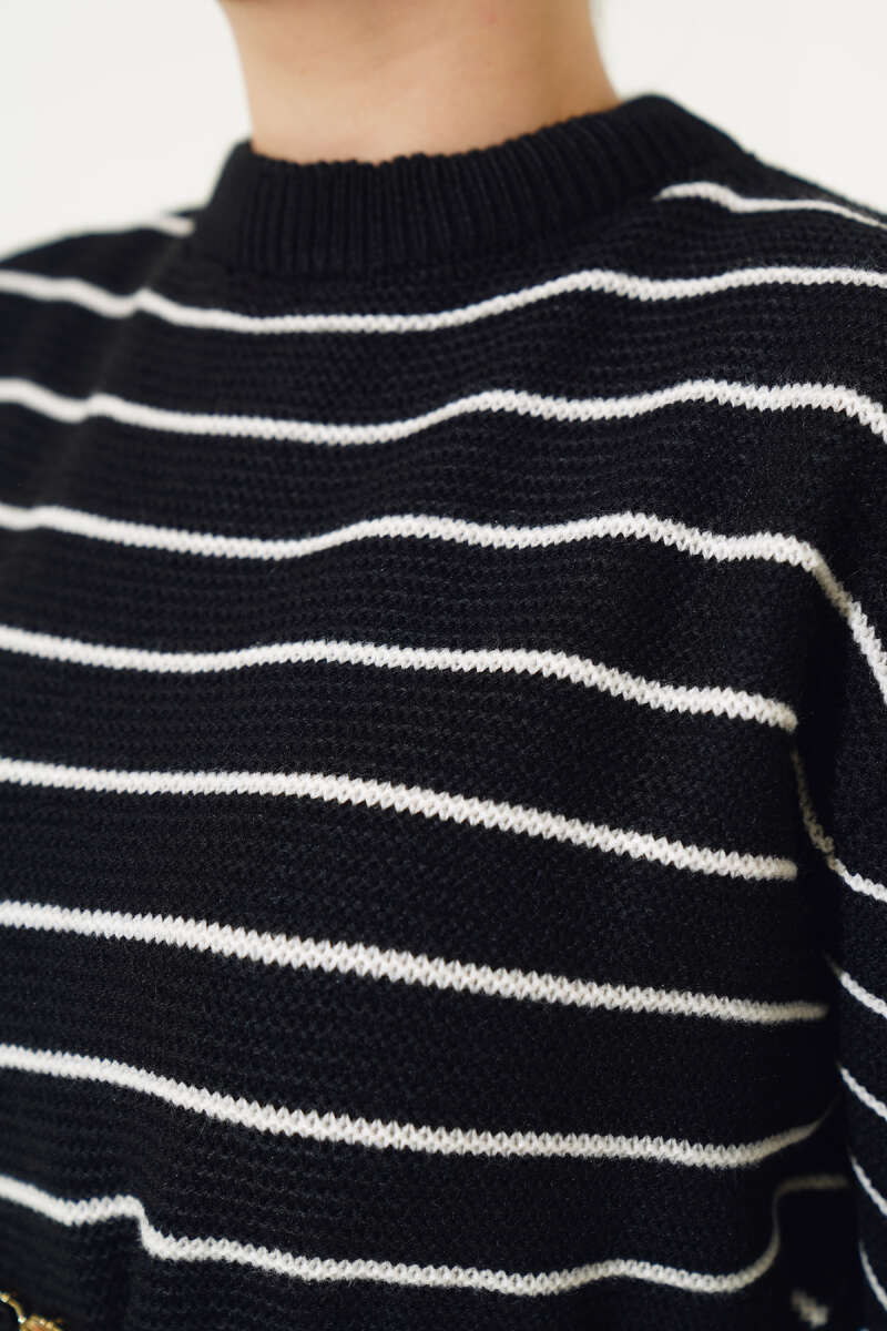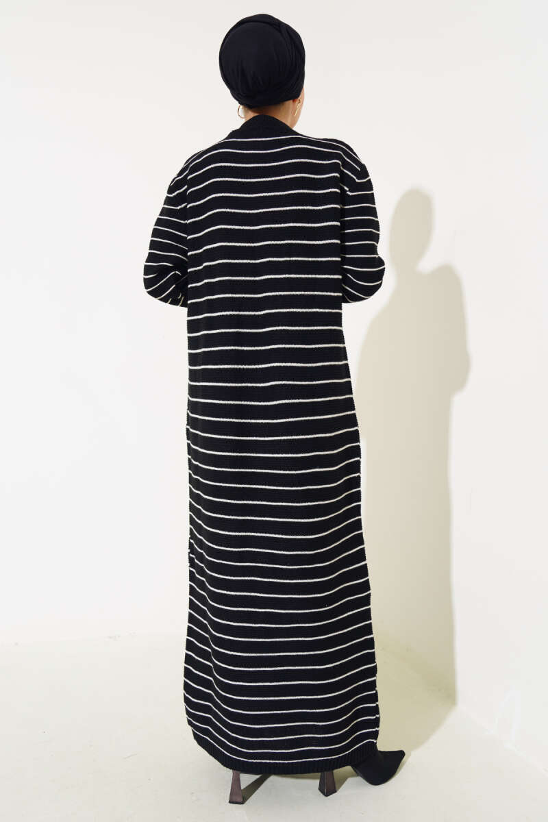 Şerit Ajur Desen Triko Elbise Acı Kahve