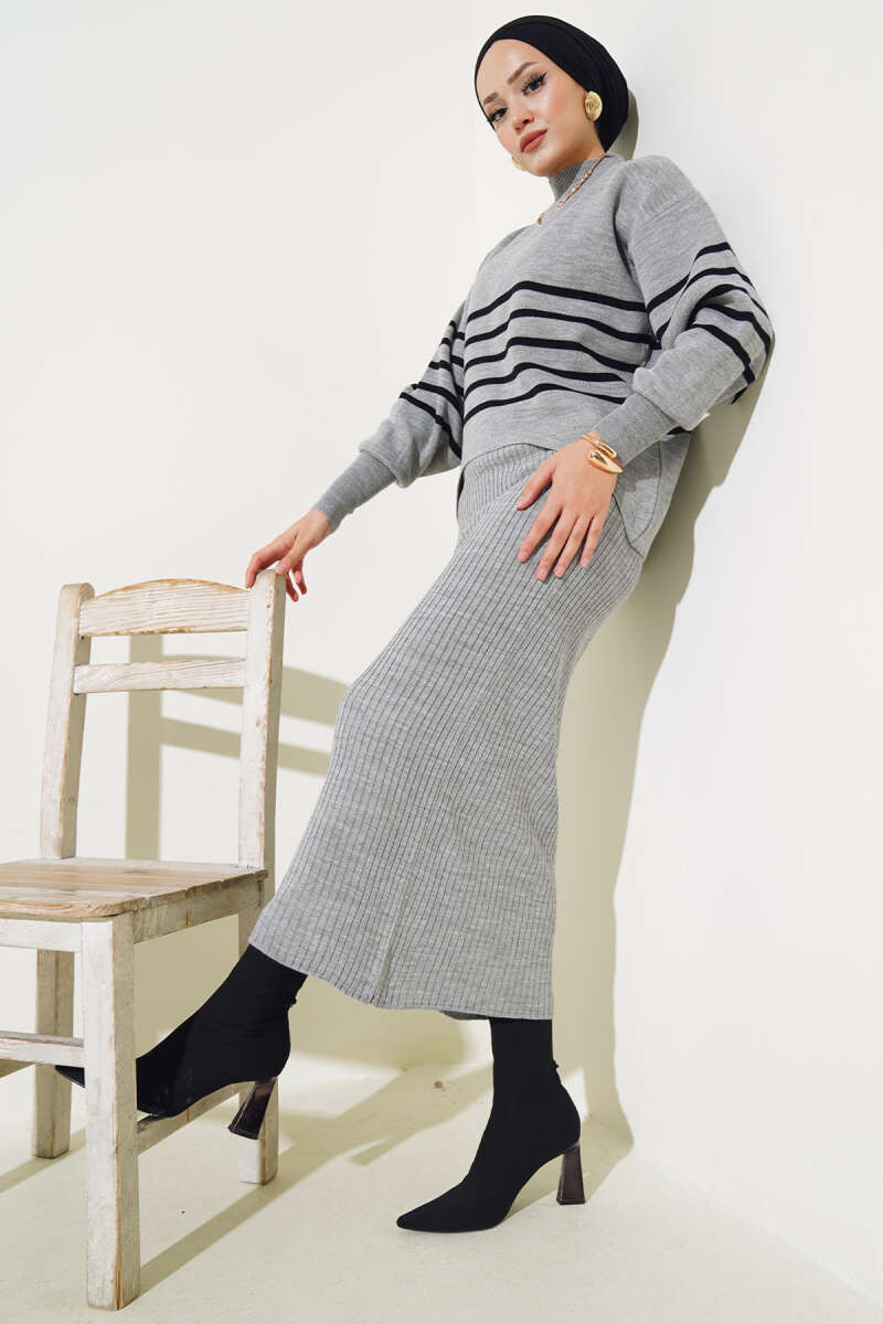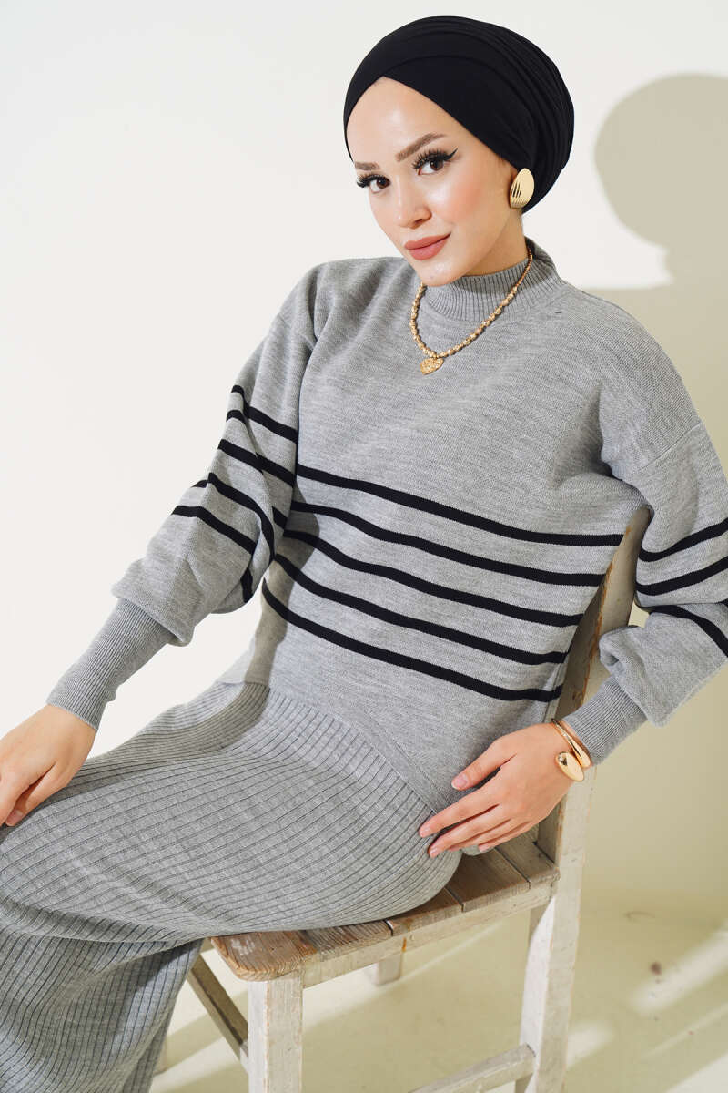 Çoban Dikişli Triko Tunik İkili Takım Taş