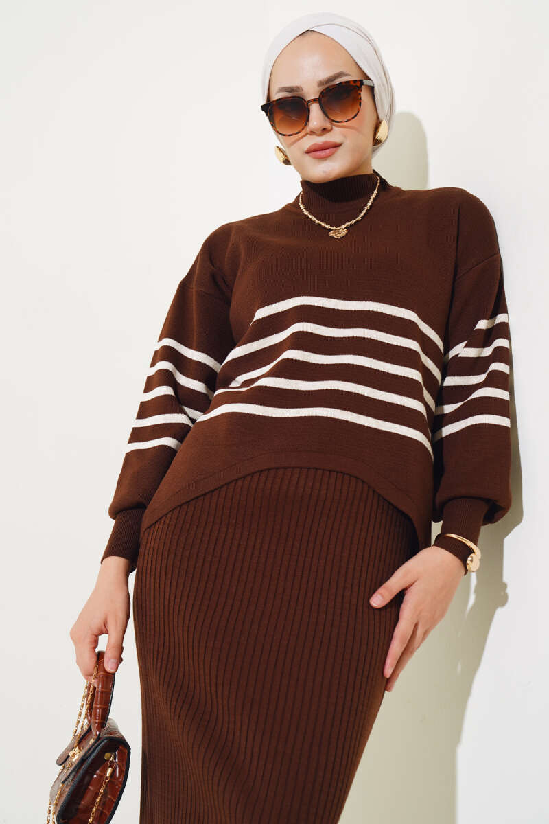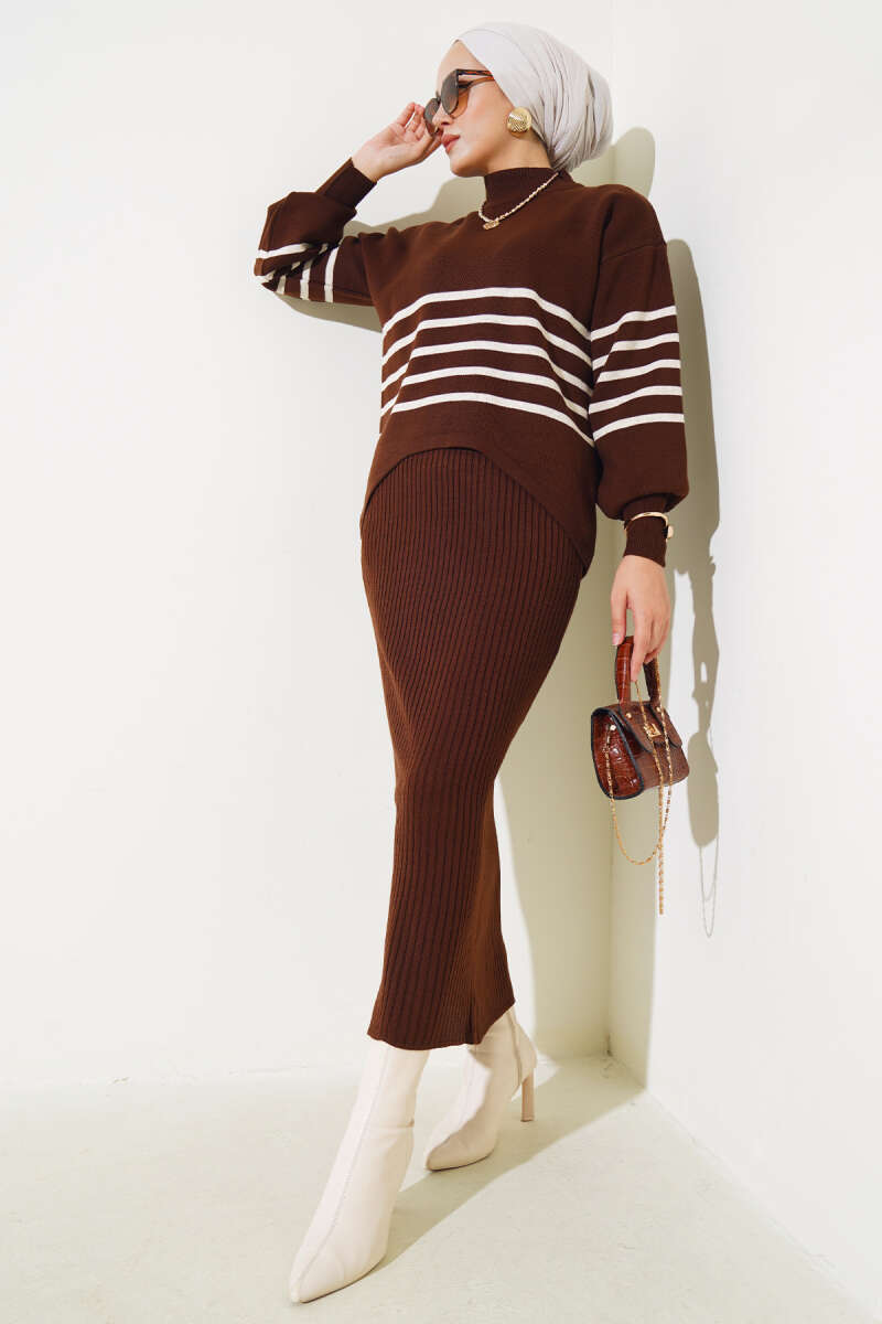 Çoban Dikişli Triko Tunik İkili Takım Nefti