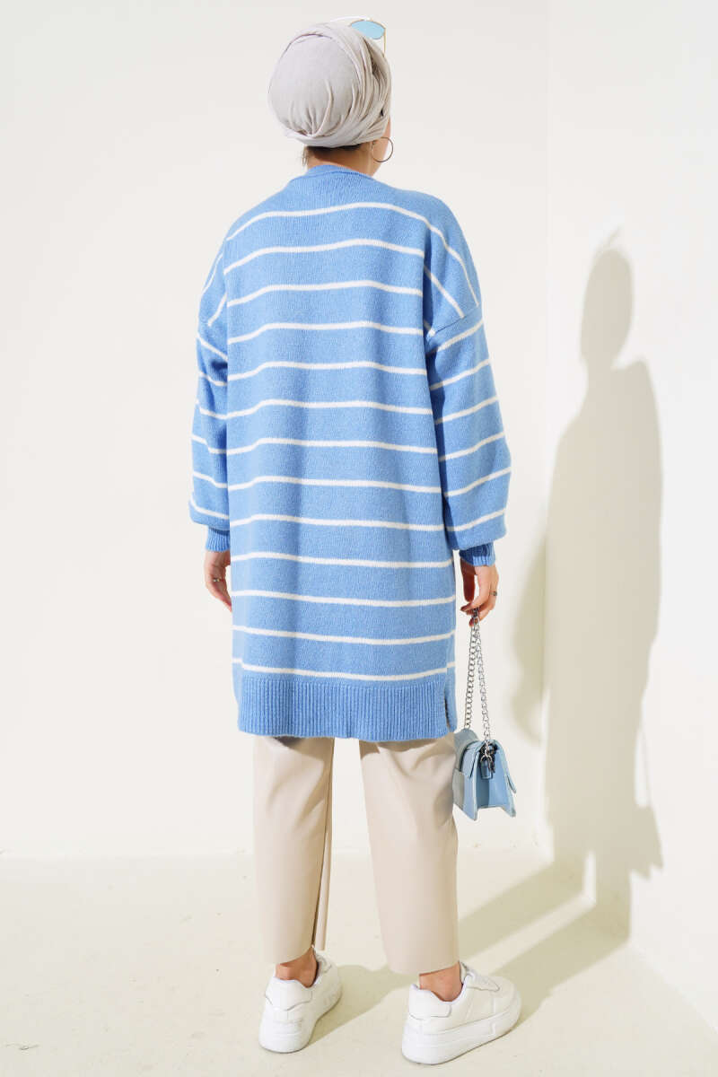 Gömlek Yaka Çizgili Triko Tunik Taş