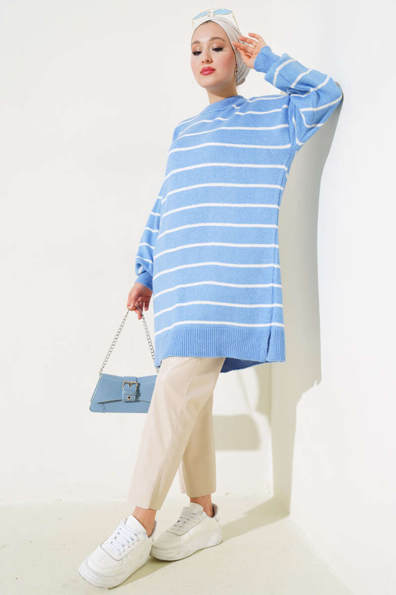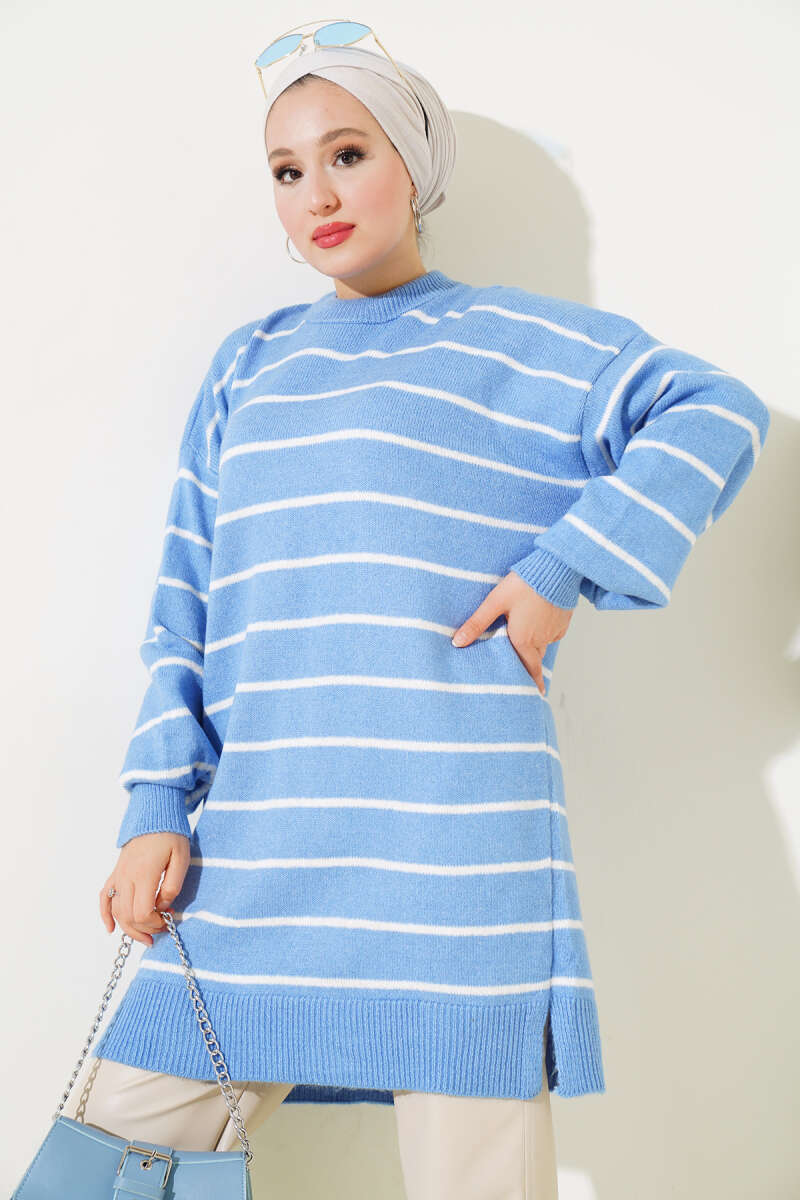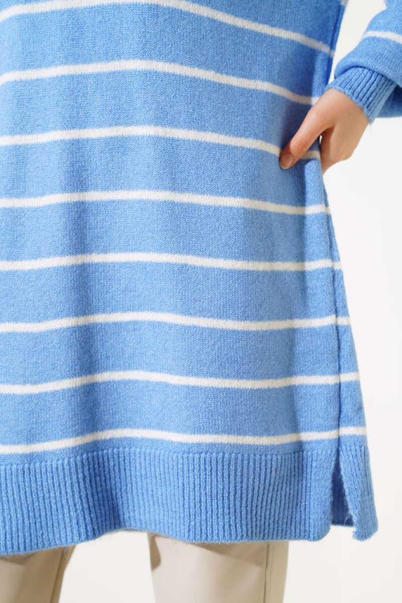 Gömlek Yaka Çizgili Triko Tunik Lacivert