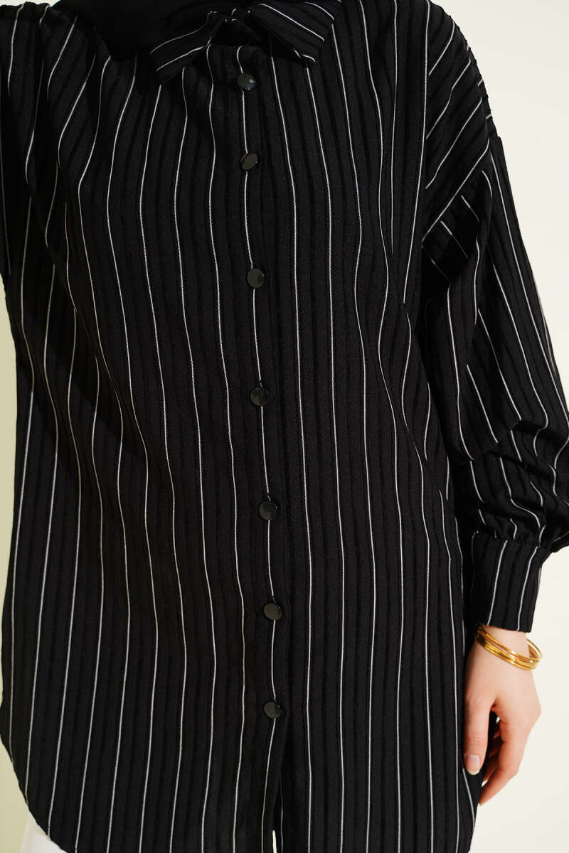 Çift Cepli Metal Düğmeli Gömlek Antrasit