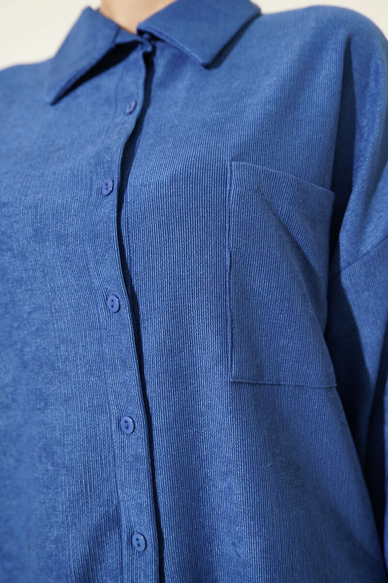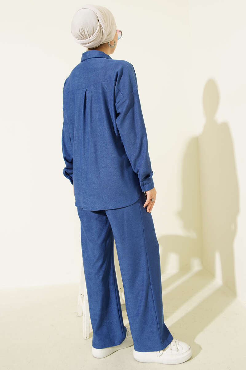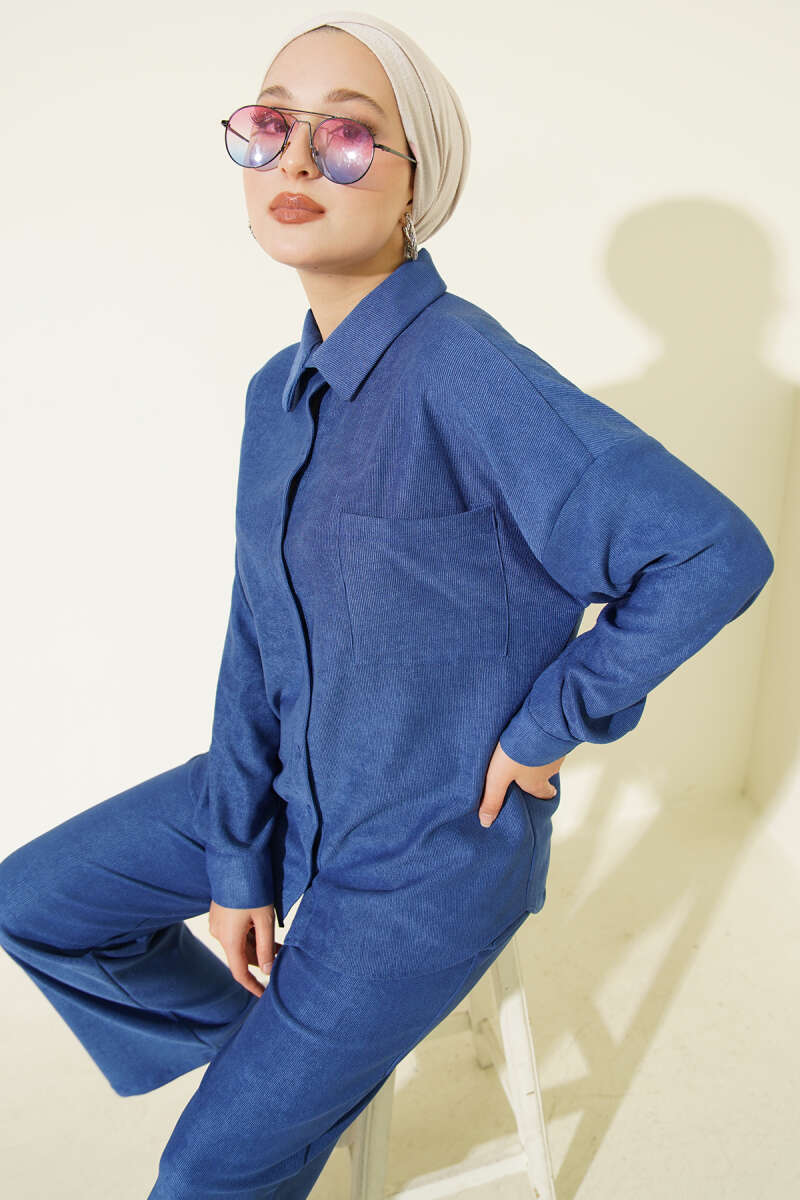 İnce Fitilli Cepli Gömlek İkili Takım Lacivert
