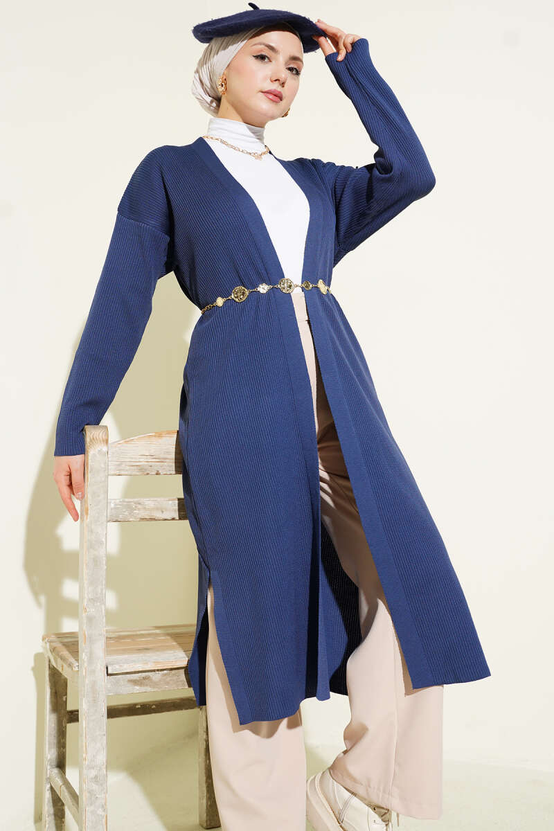 Çift Cepli Düğmeli Triko Hırka Bordo