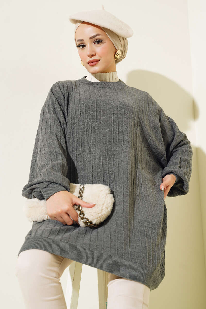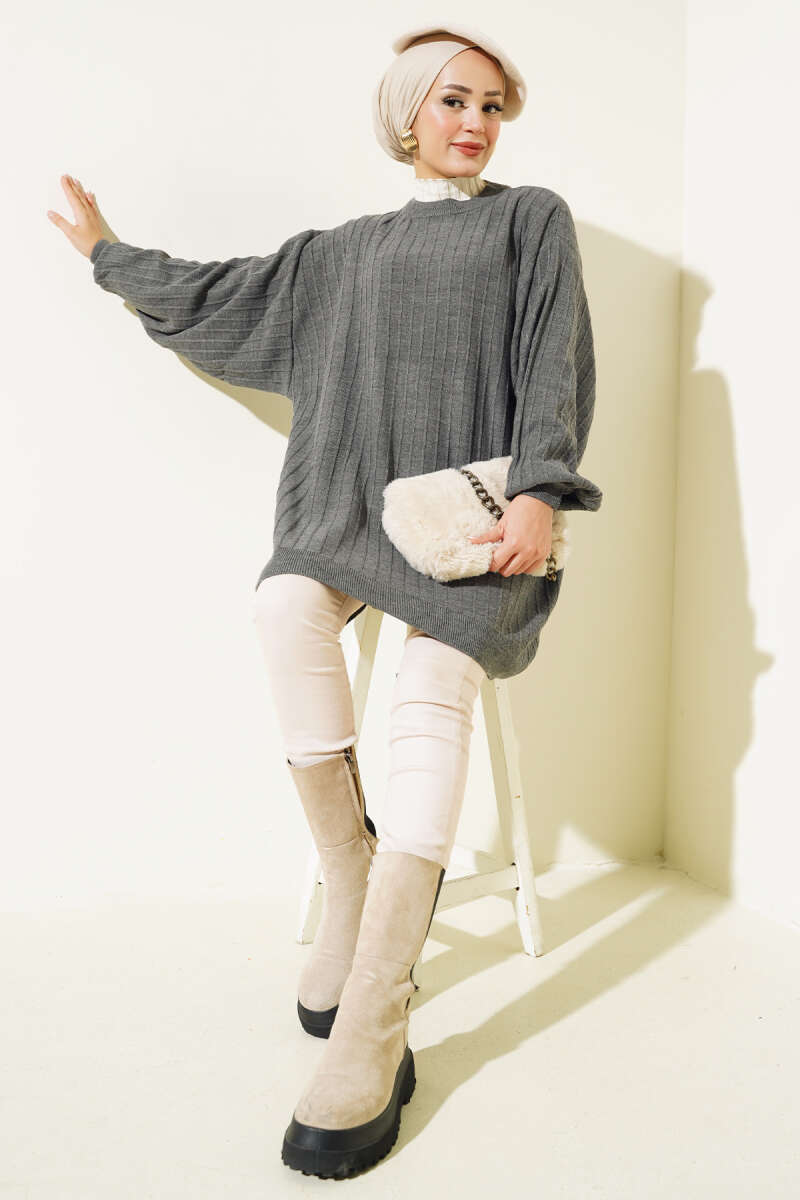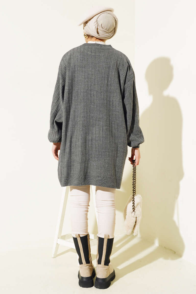 Örgü Kabartmalı Yumoş Triko Tunik Gri