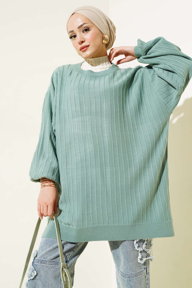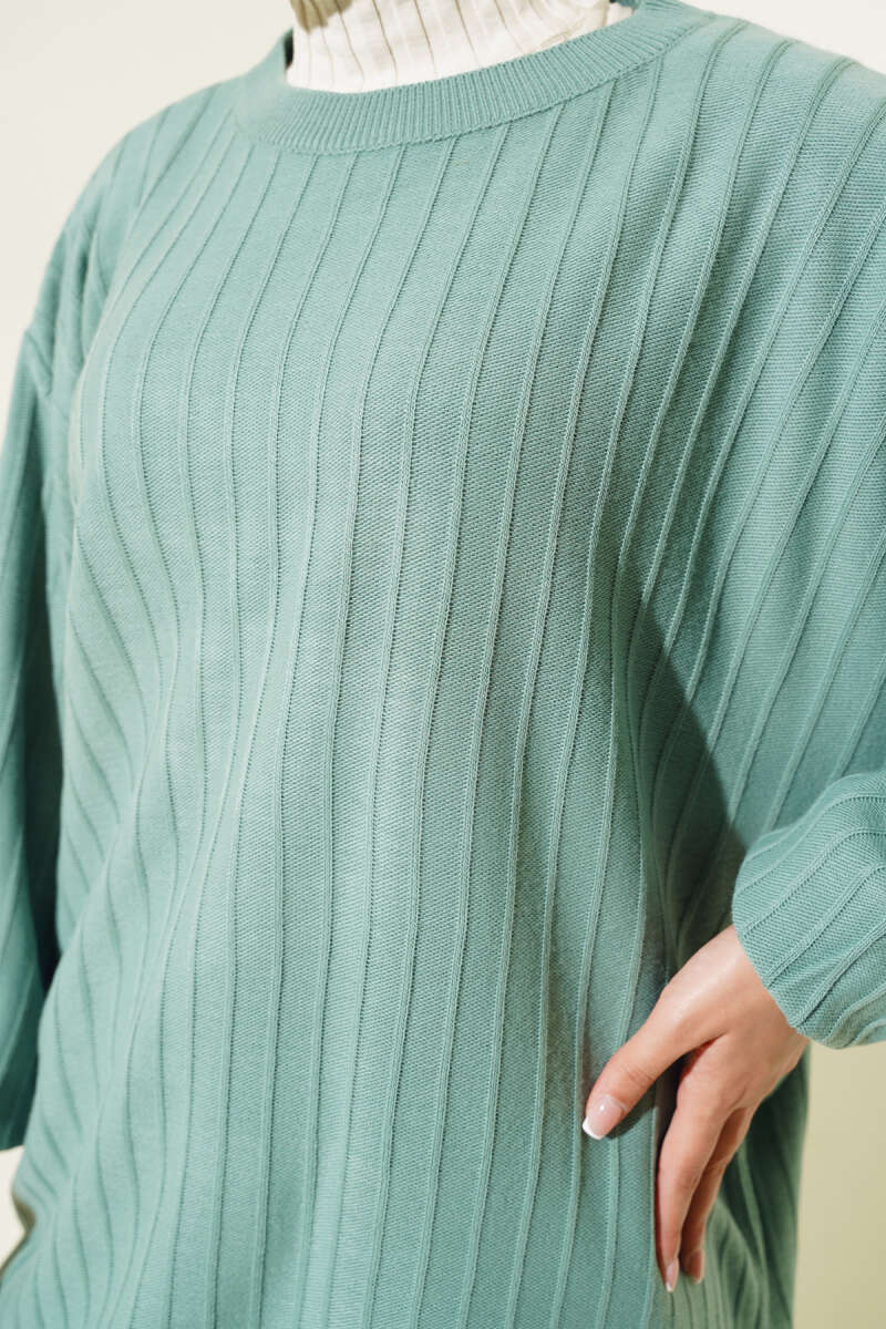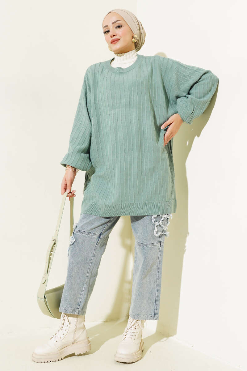 Örgü Kabartmalı Yumoş Triko Tunik Gri
