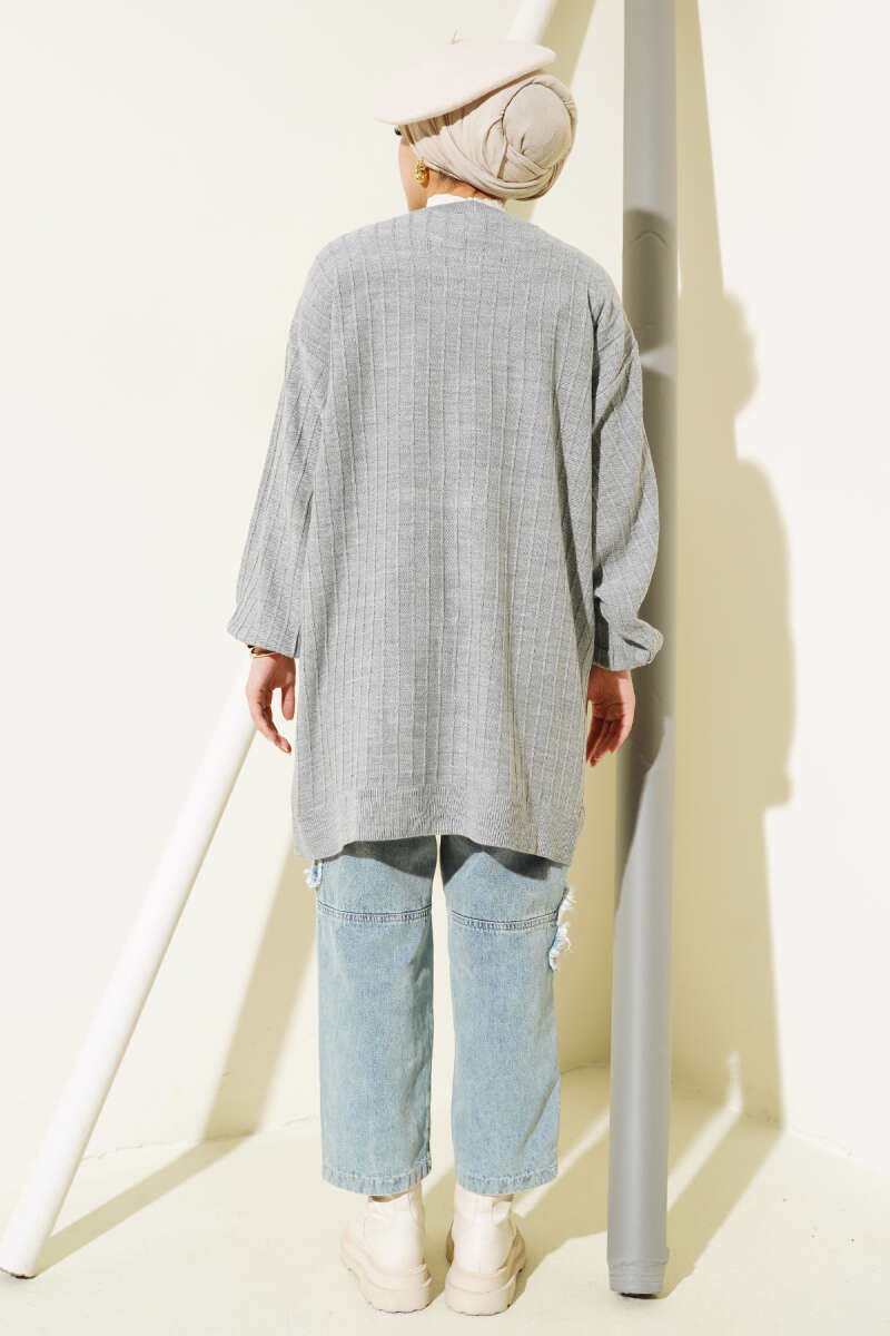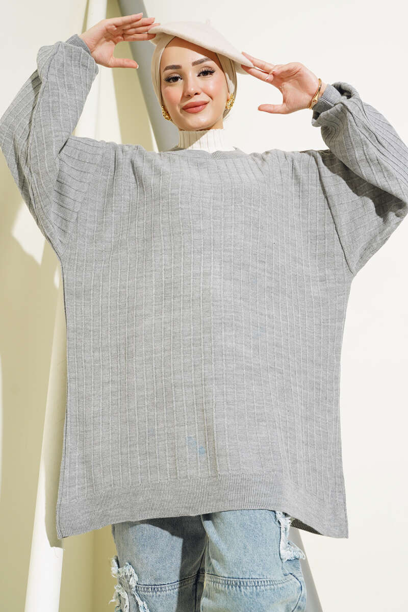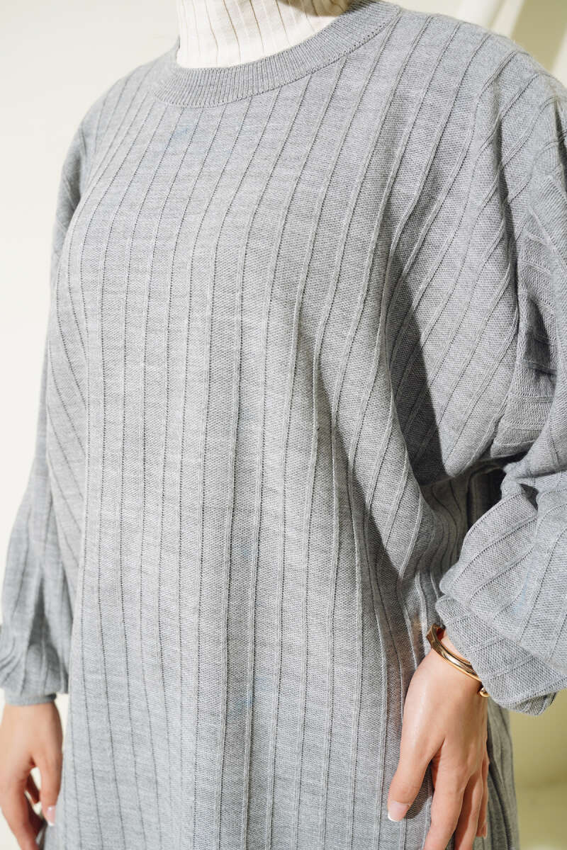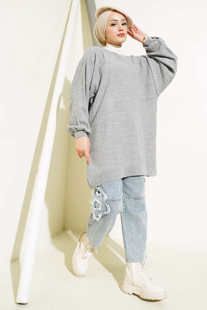 Örgü Kabartmalı Yumoş Triko Tunik Gri